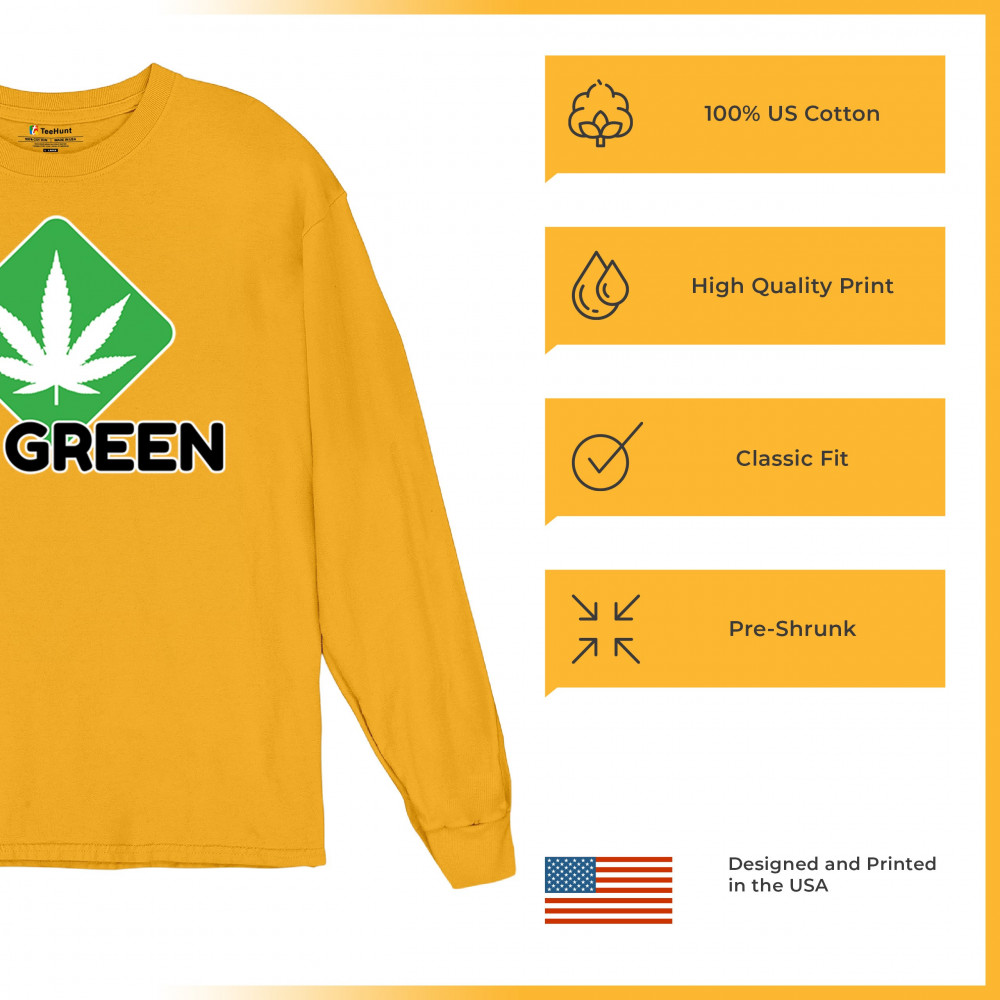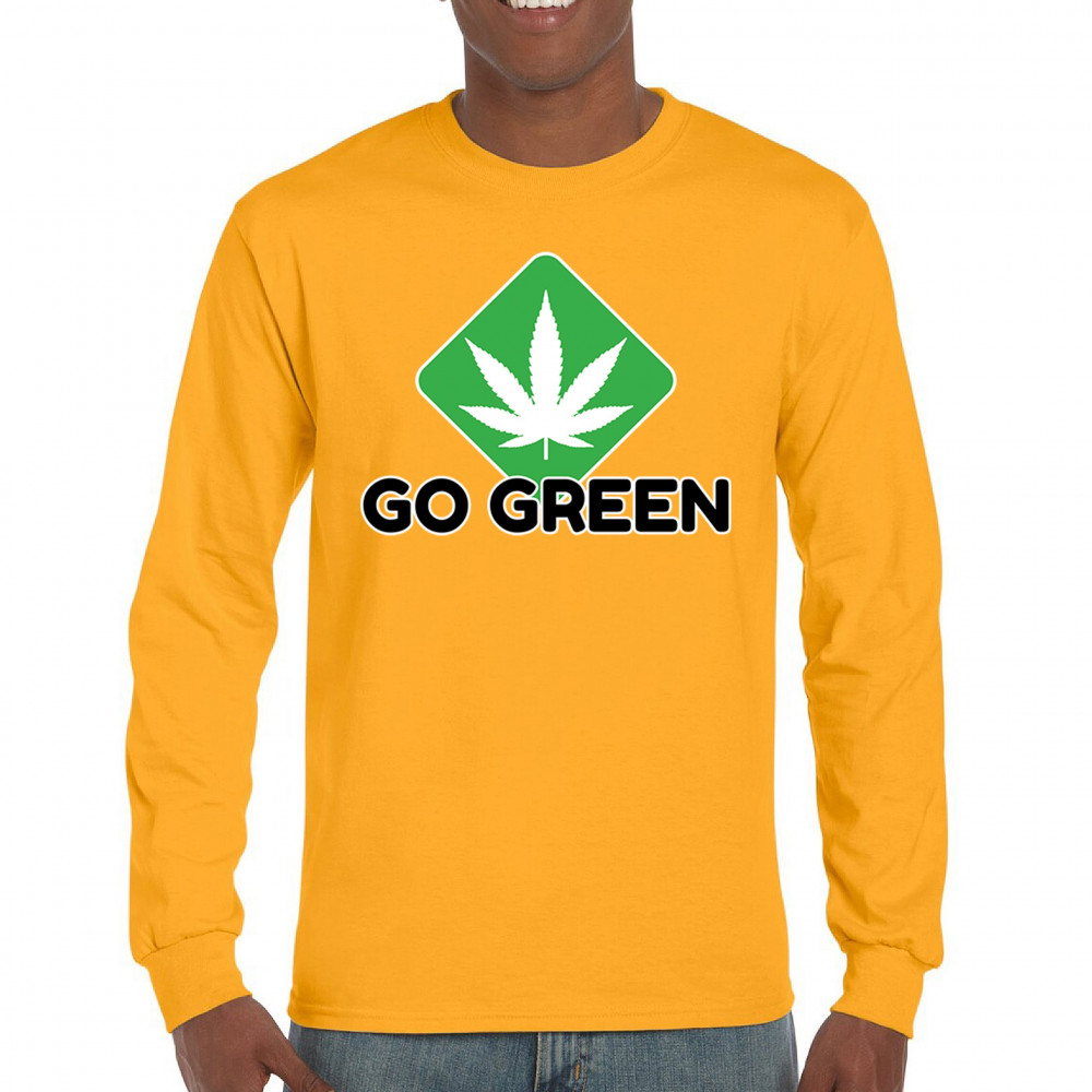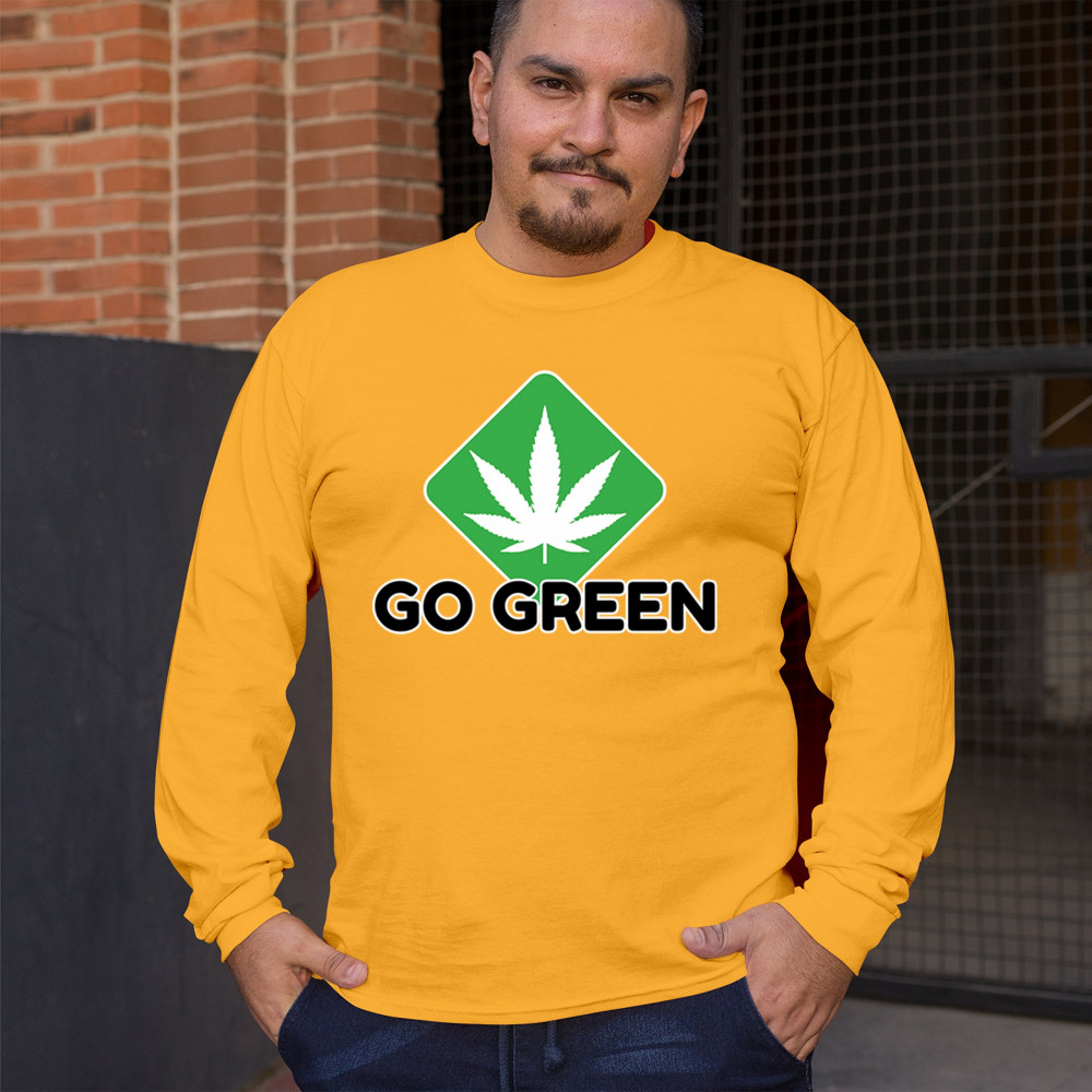 Bold Go Green design with cannabis leaf icon. Perfect for 420 fans, eco-conscious wearers, stoners, and marijuana advocates.