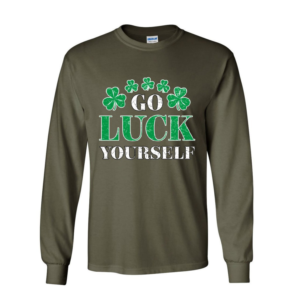 GO LUCK YOURSELF long sleeve t-shirt st. patrick's day offensive funny irish tee military green