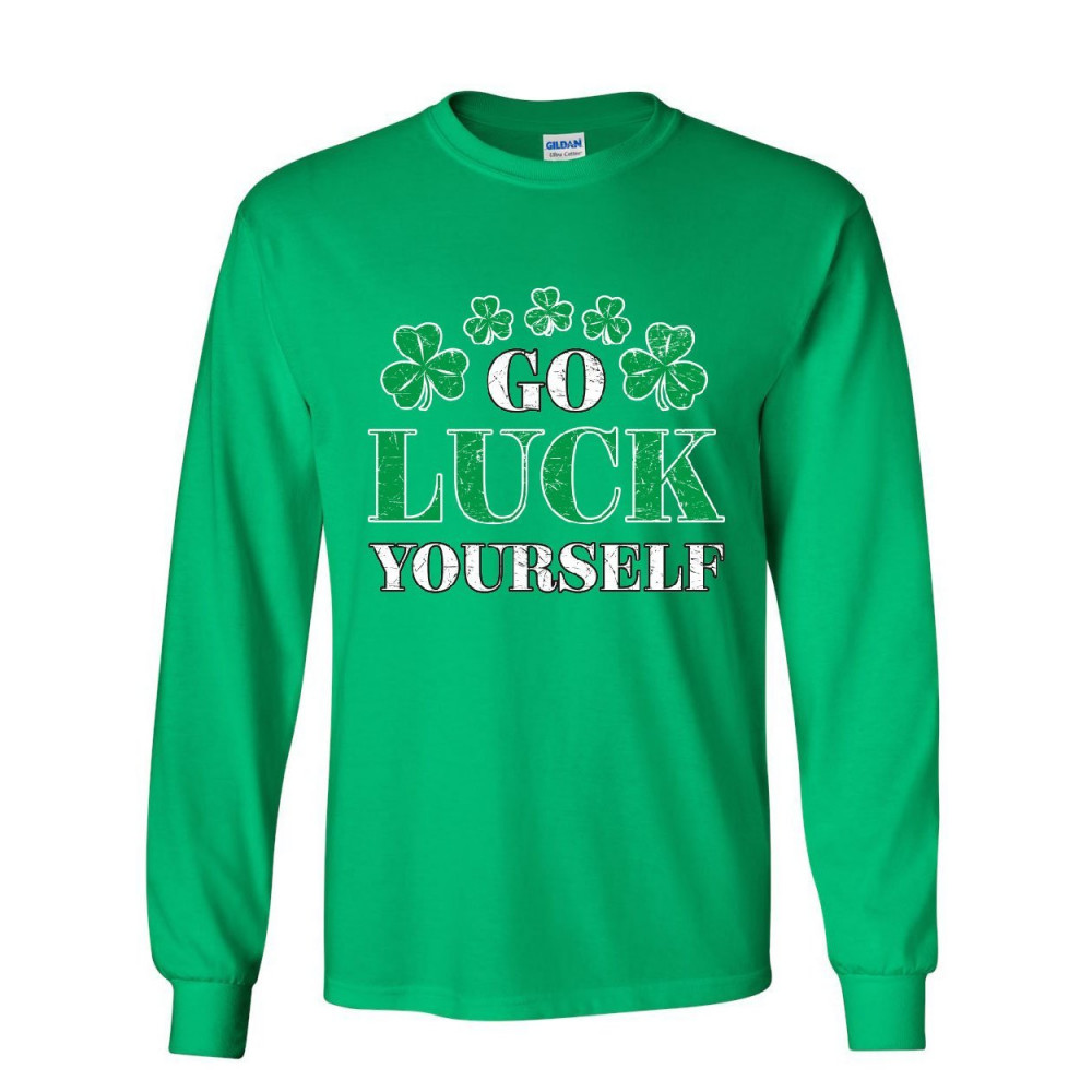 GO LUCK YOURSELF long sleeve t-shirt st. patrick's day offensive funny irish tee green