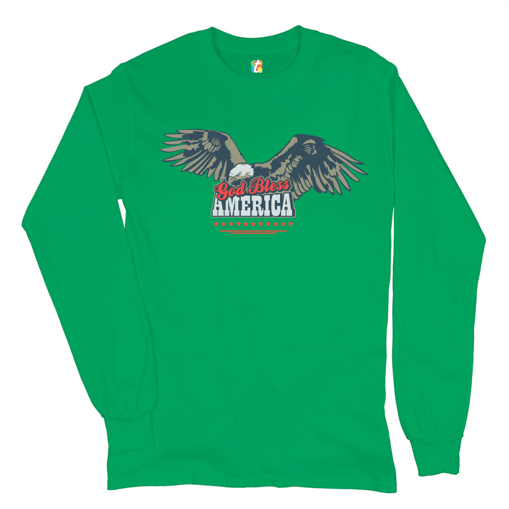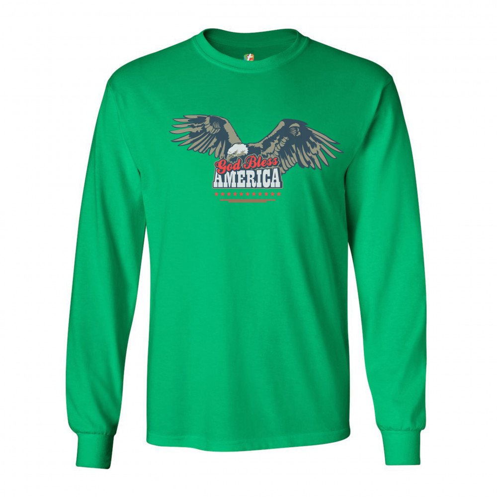 GOD BLESS AMERICA long sleeve t-shirt 4th of july bald eagle patriotic green