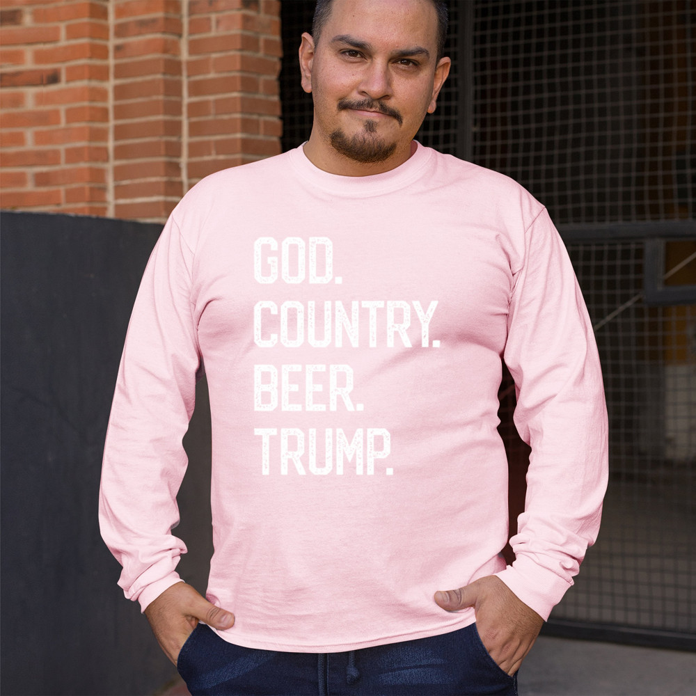 Celebrate God, country, and Trump with this bold design. Perfect for Republicans and America First supporters who stand for freedom and values.
