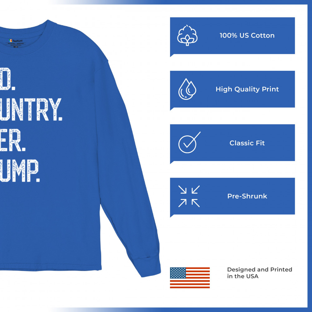 Celebrate God, country, and Trump with this bold design. Perfect for Republicans and America First supporters who stand for freedom and values.