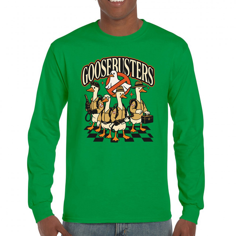 Celebrate October 31 with our Goosebusters shirt—a perfect mix of spooky and parody fun. This halloween goose design combines silly goose humor with ghost-busting style, making it a must-have for fans of funny goose shirts and spooky goose shirts. Ideal as a goose costume tee, goose parody shirt, or comedy bird shirt, this silly design adds Trick or Treat laughter to any haunted house or scary night.