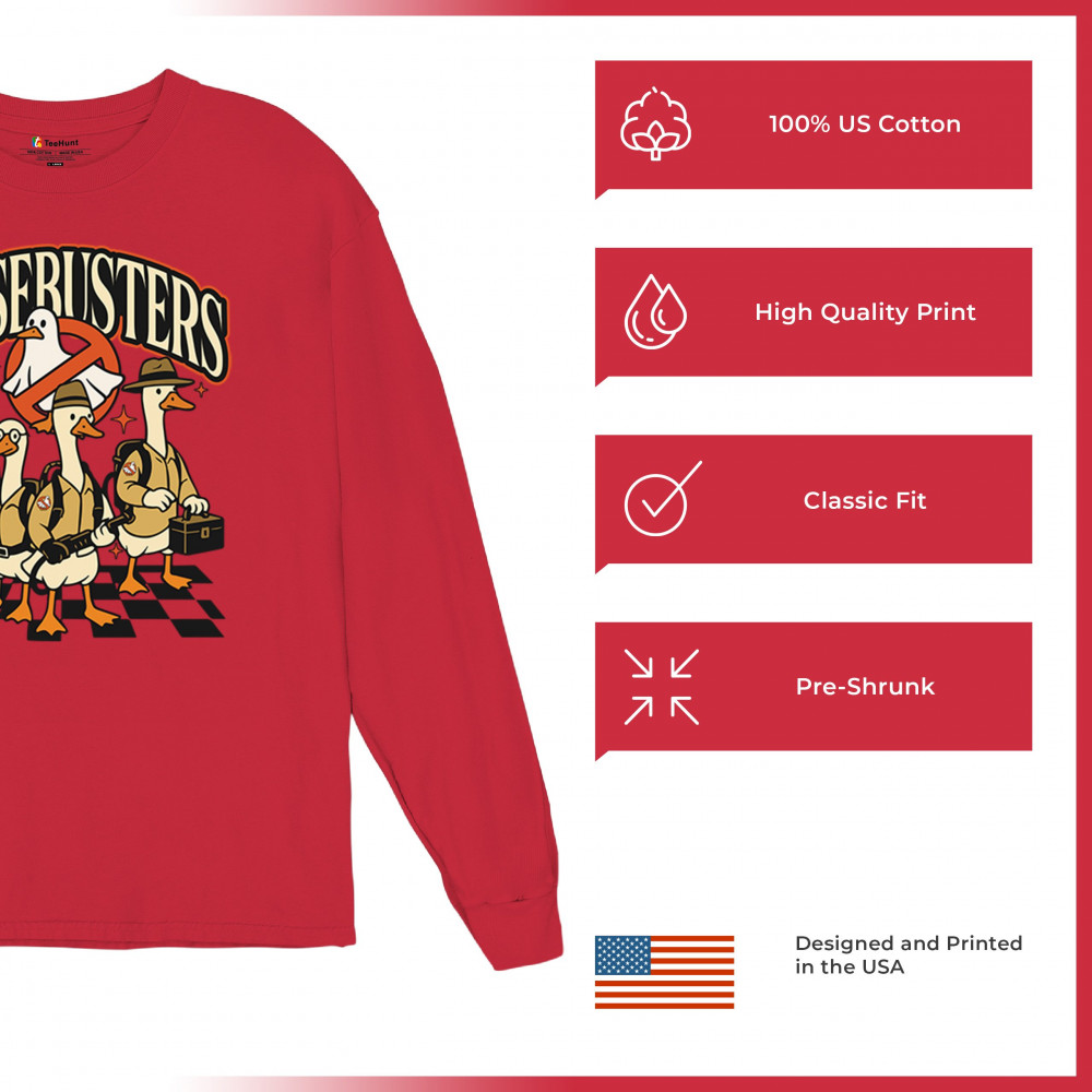 Celebrate October 31 with our Goosebusters shirt—a perfect mix of spooky and parody fun. This halloween goose design combines silly goose humor with ghost-busting style, making it a must-have for fans of funny goose shirts and spooky goose shirts. Ideal as a goose costume tee, goose parody shirt, or comedy bird shirt, this silly design adds Trick or Treat laughter to any haunted house or scary night.