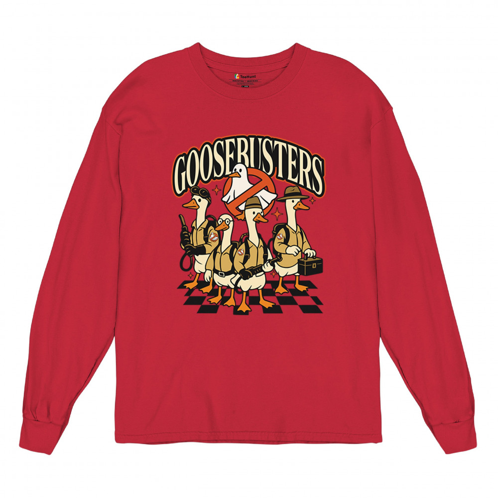 Goosebusters Halloween goose parody shirt – spooky goose design with silly goose humor, comedy bird style, Trick or Treat fun, and creepy night vibes.