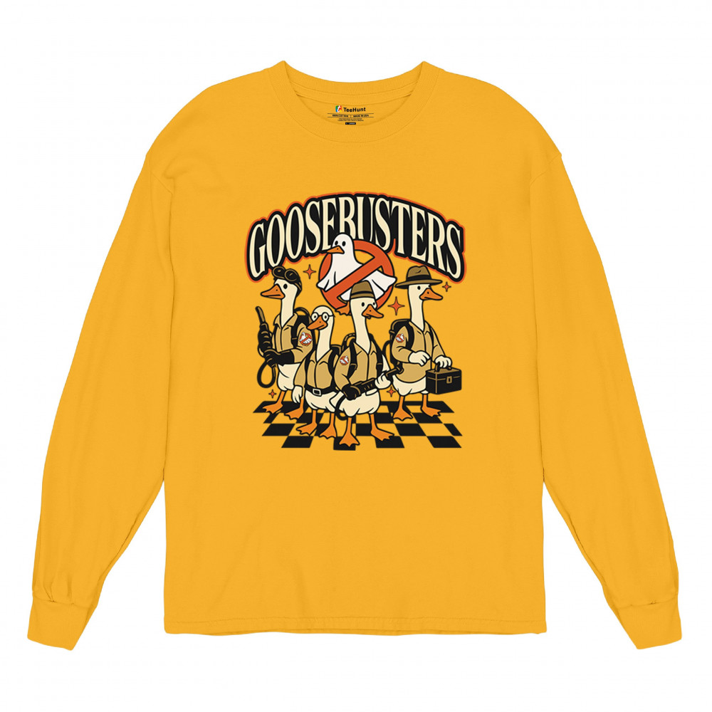 Goosebusters Halloween goose parody shirt – spooky goose design with silly goose humor, comedy bird style, Trick or Treat fun, and creepy night vibes.