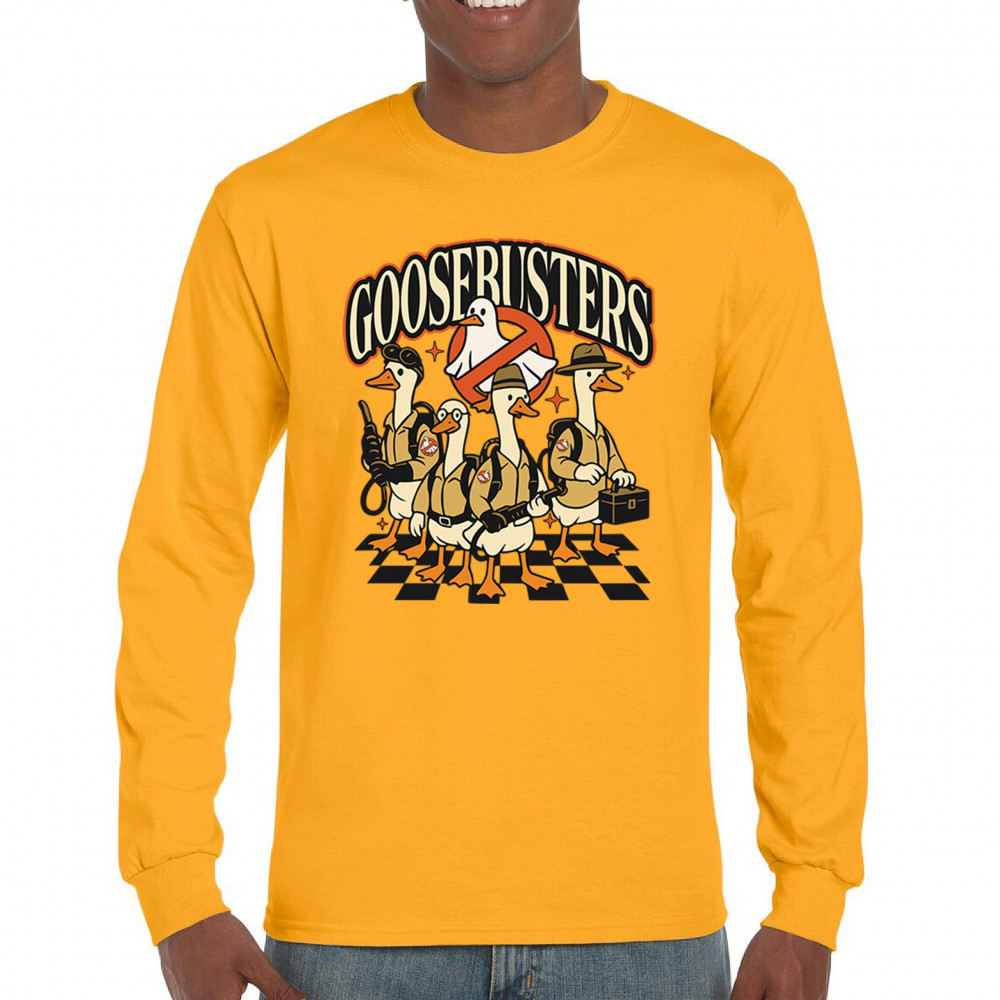 Celebrate October 31 with our Goosebusters shirt—a perfect mix of spooky and parody fun. This halloween goose design combines silly goose humor with ghost-busting style, making it a must-have for fans of funny goose shirts and spooky goose shirts. Ideal as a goose costume tee, goose parody shirt, or comedy bird shirt, this silly design adds Trick or Treat laughter to any haunted house or scary night.