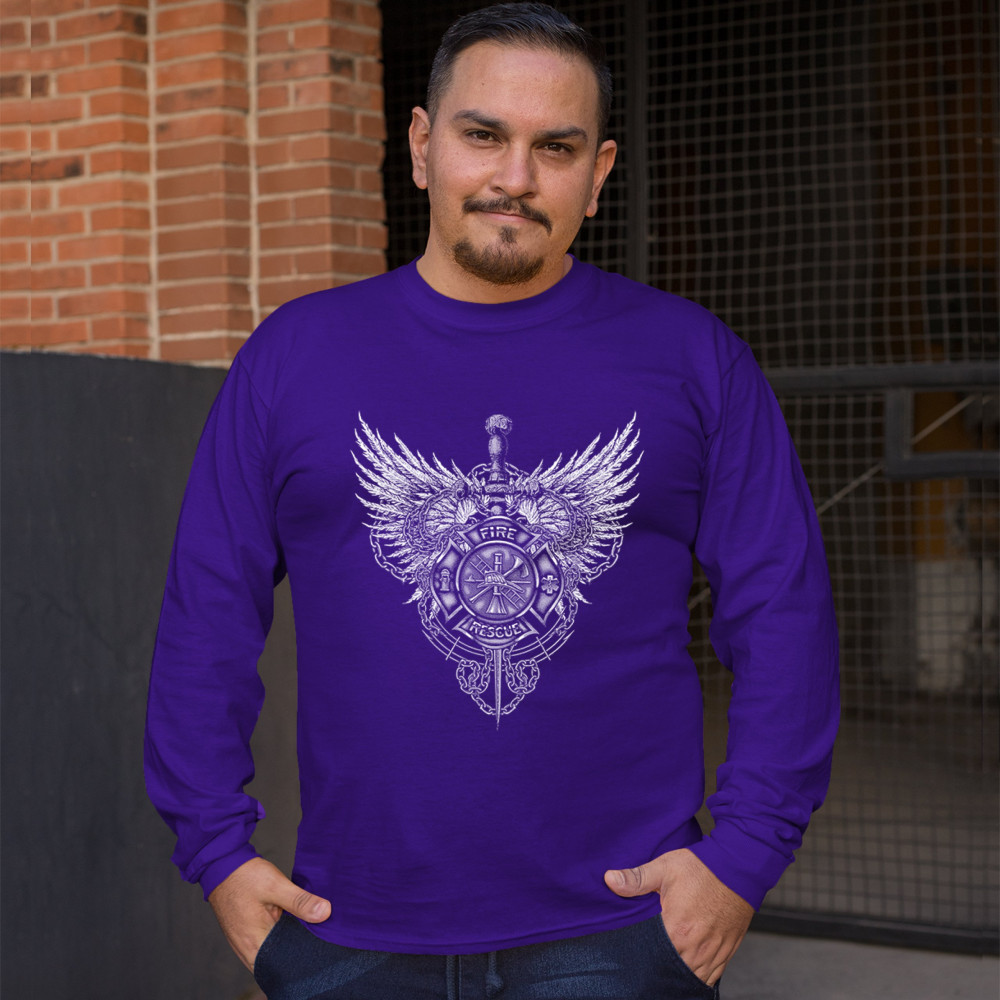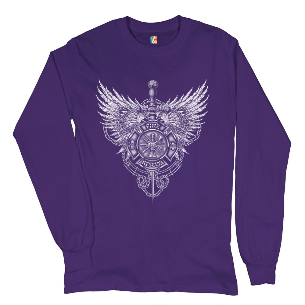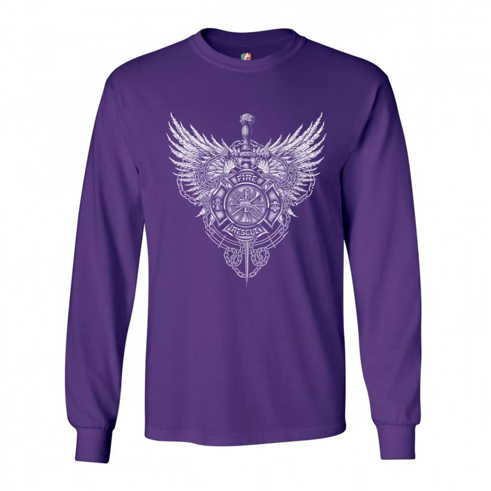 GOTHIC FIREFIGHTER EMBLEM long sleeve t-shirt courage honor sacrifice purple