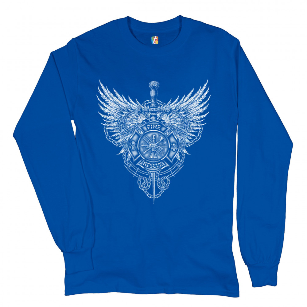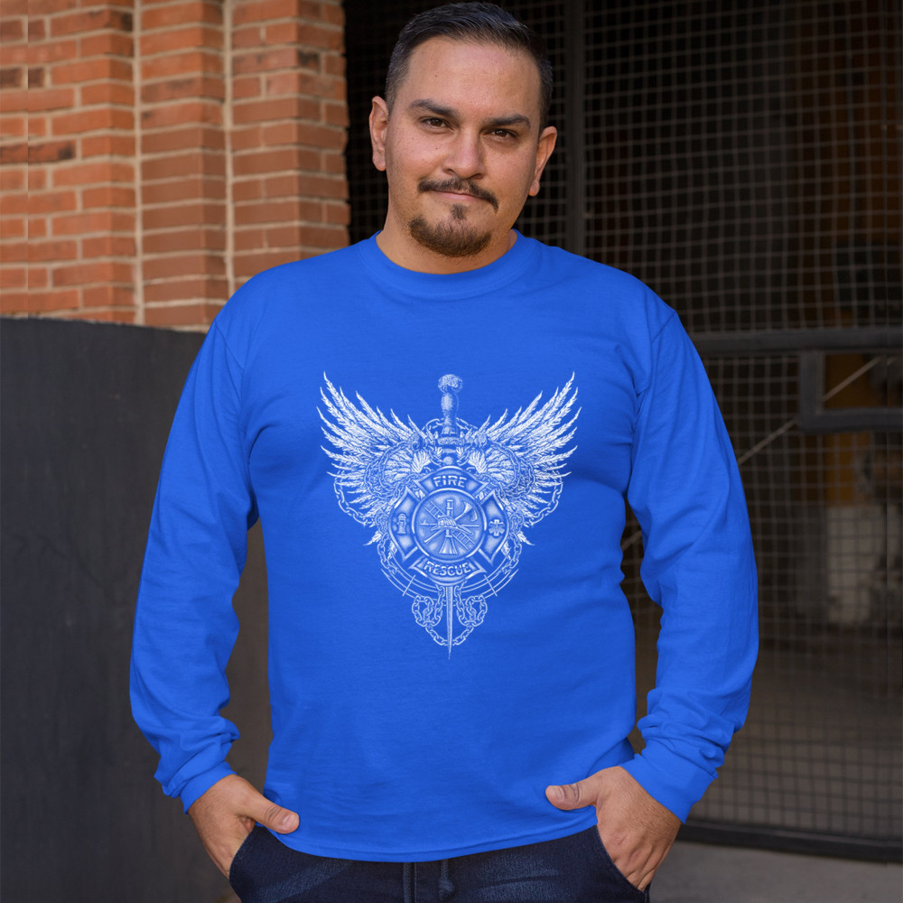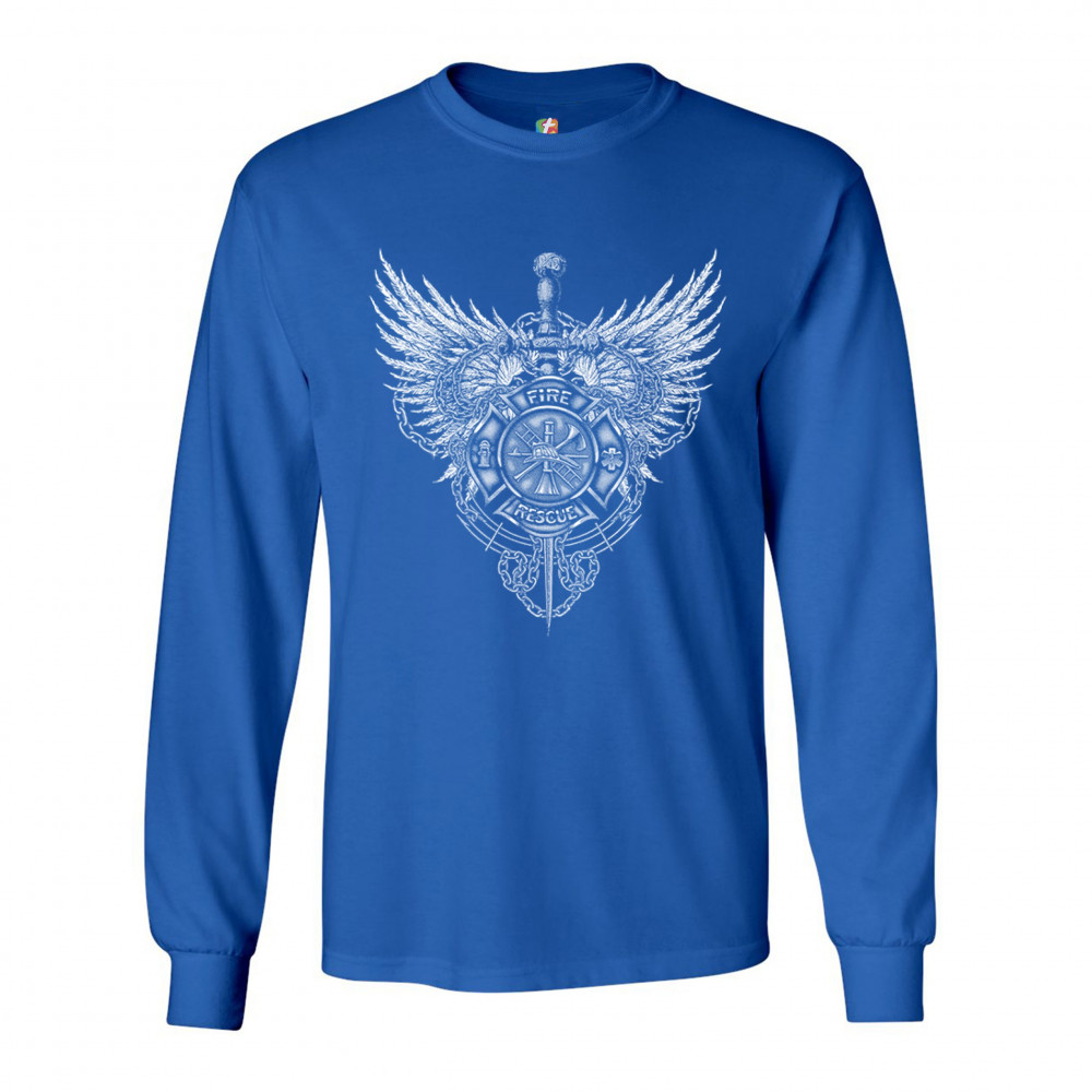 GOTHIC FIREFIGHTER EMBLEM long sleeve t-shirt courage honor sacrifice royal blue