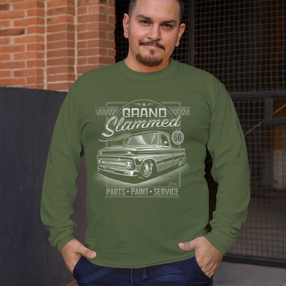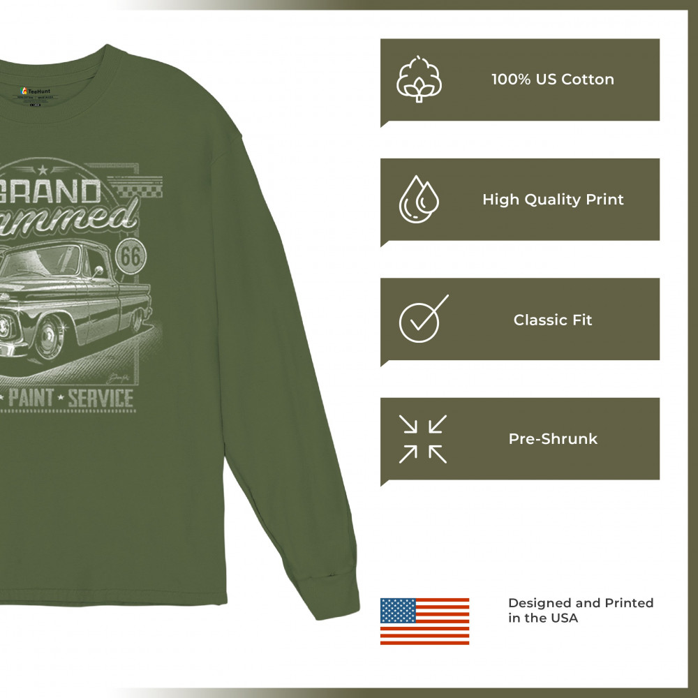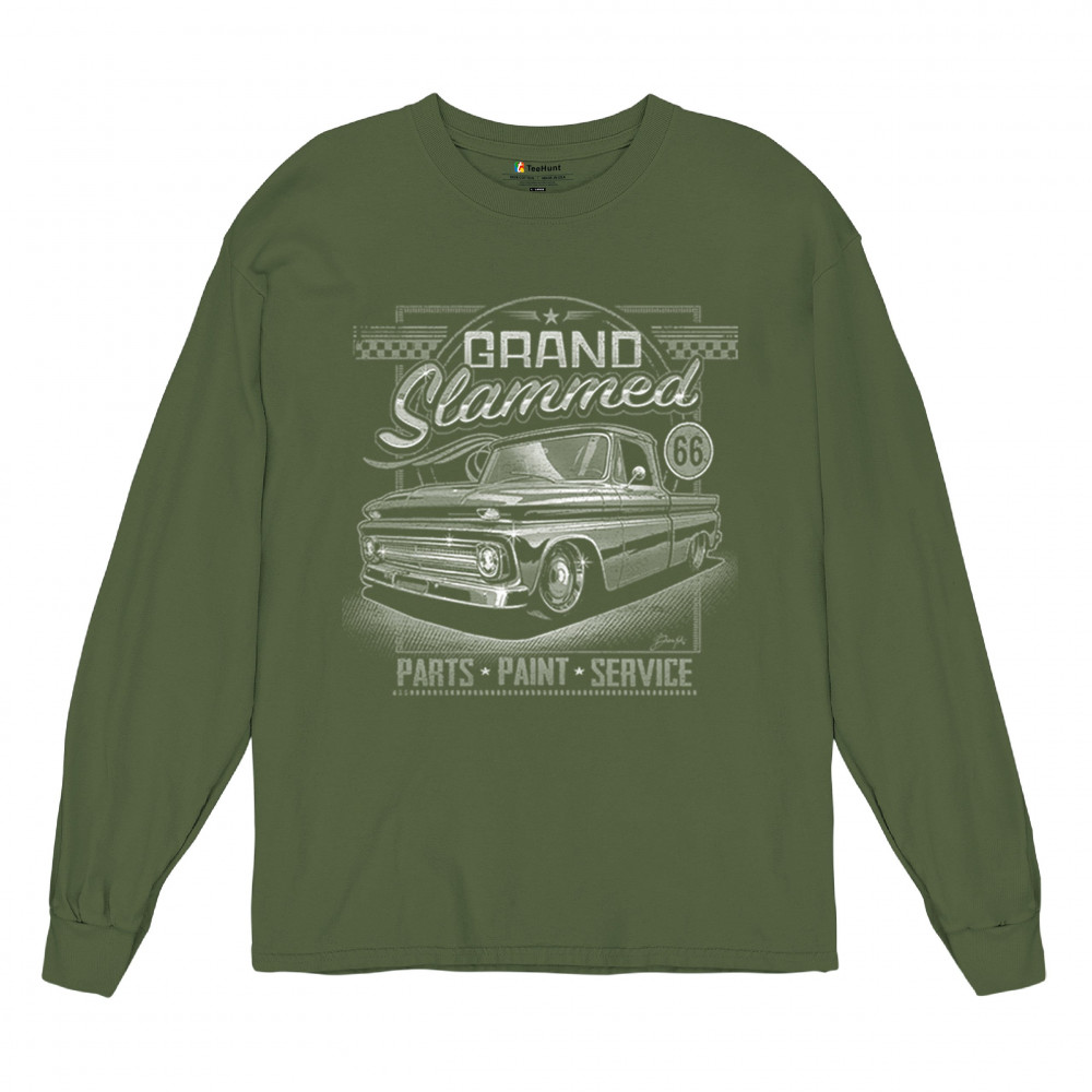 Step back in time with our Grand Slammed vintage truck design, perfect for fans of classic American automotive culture. This shirt showcases a beautifully detailed illustration of a custom truck, making it a standout piece for any car enthusiast. Whether you're attending a car show, hanging out in the garage, or just enjoying a casual day out, this shirt will keep you comfortable and stylish. It's an excellent gift for truck lovers, hot rod aficionados, and anyone with a love for vintage cars. Crafted from premium materials, this shirt offers both durability and softness. Add this unique design to your collection and celebrate the golden era of custom trucks.