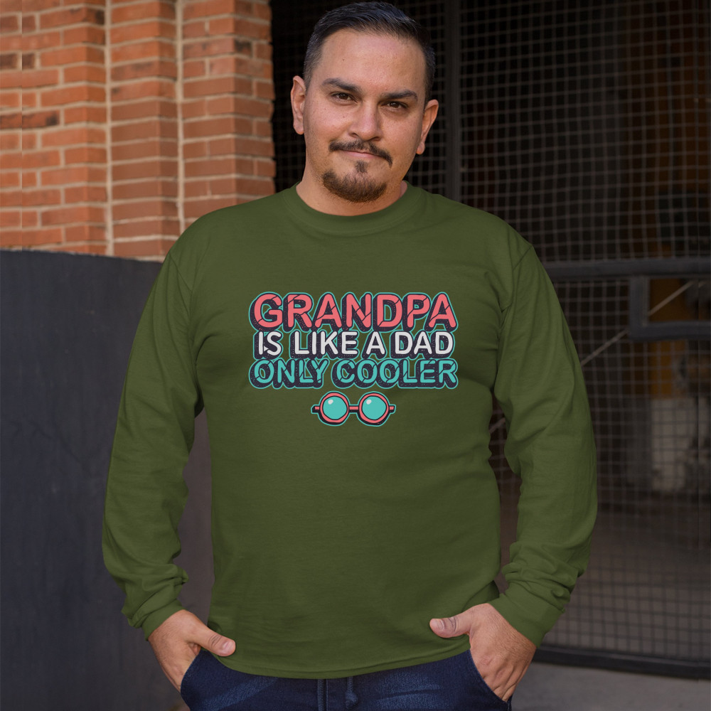 GRANDPA IS LIKE A DAD ONLY COOLER long sleeve t-shirt granddad father's day military green