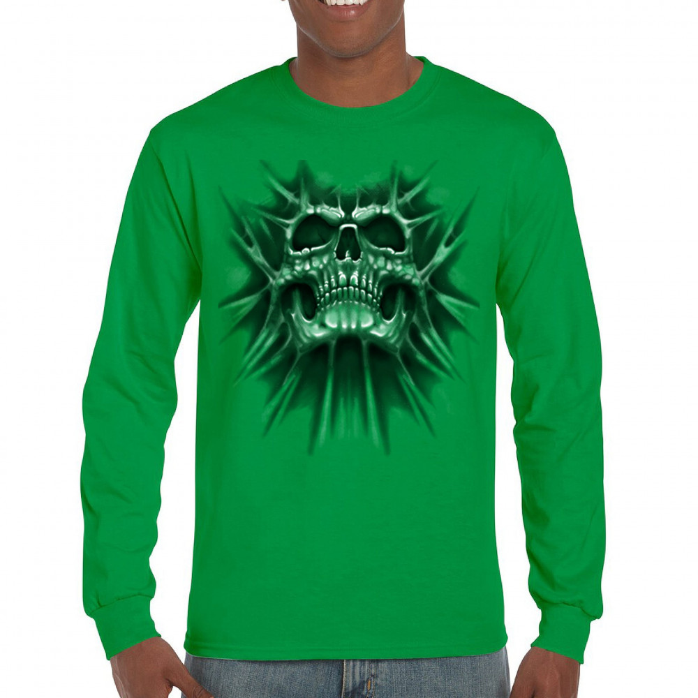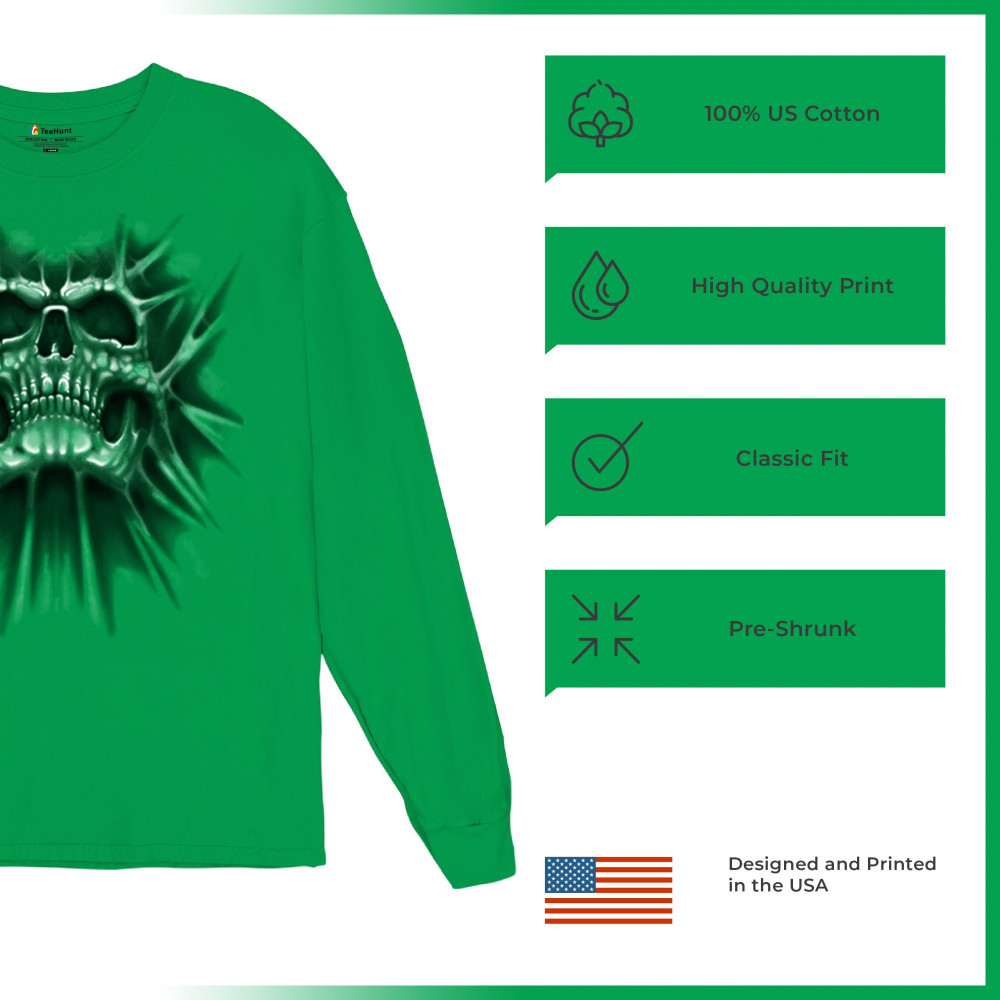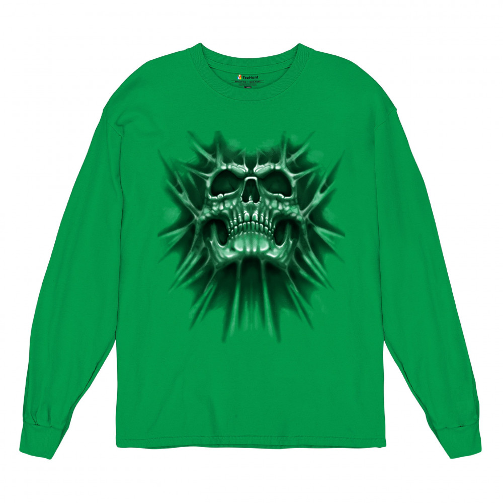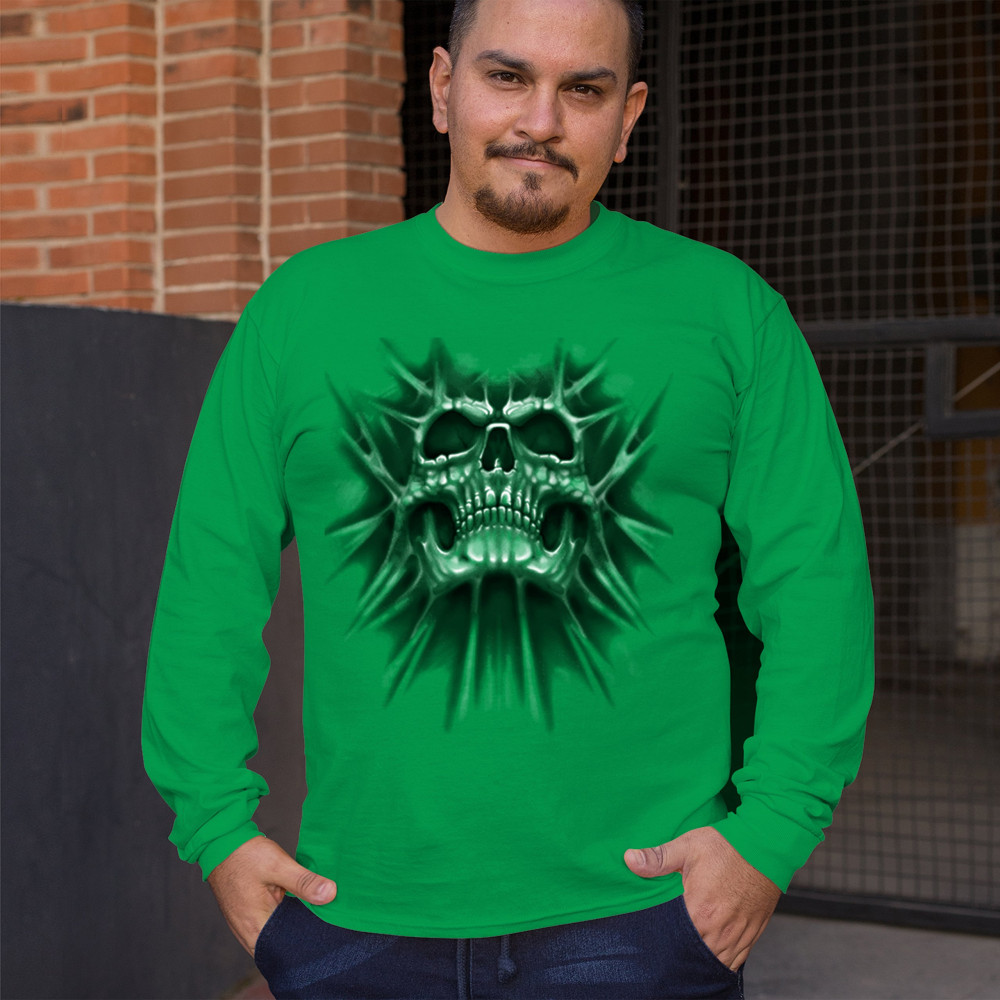Gothic skull biker shirt with roots design. Perfect for Metalhead, Rock n Roll fans, edgy rebel fashion, and spooky Halloween vibes.