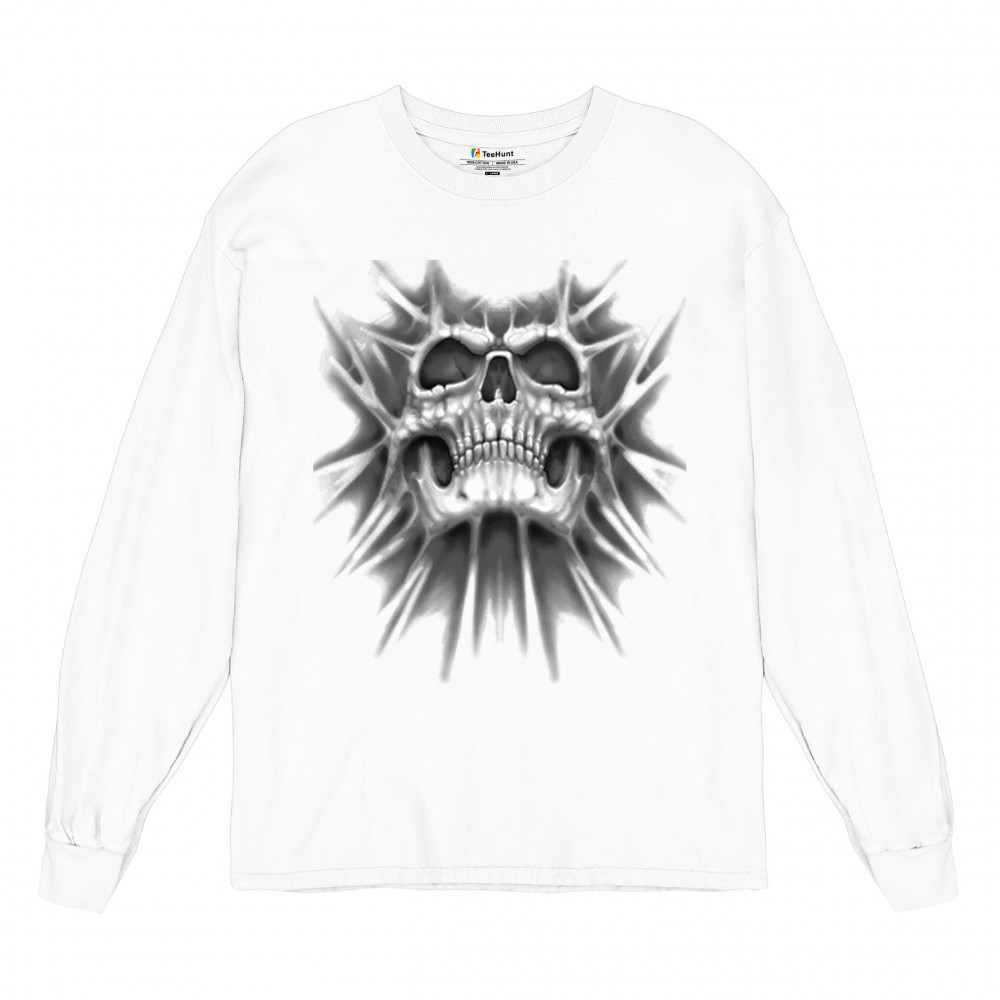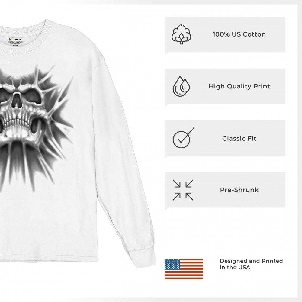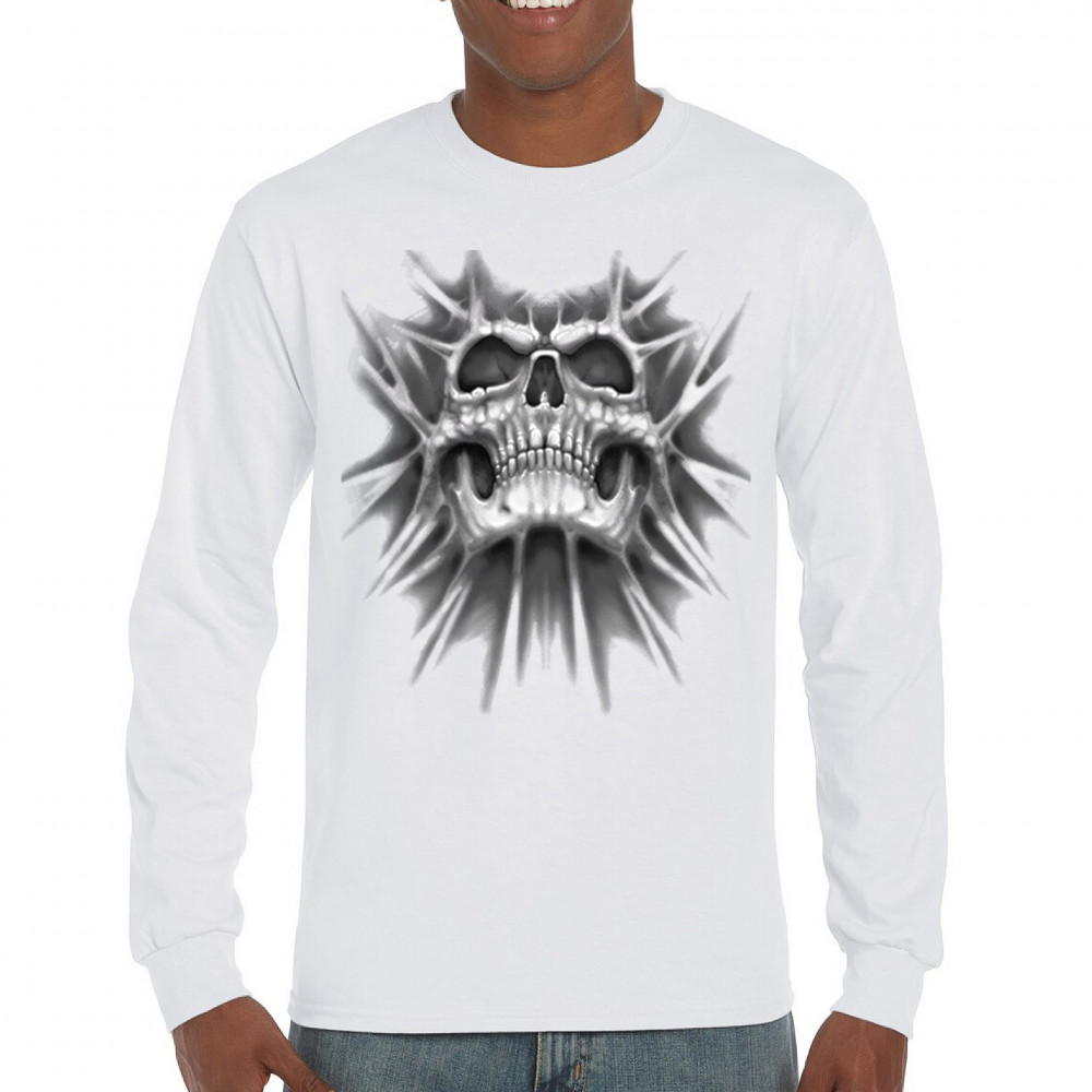 Gothic skull biker shirt with roots design. Perfect for Metalhead, Rock n Roll fans, edgy rebel fashion, and spooky Halloween vibes.
