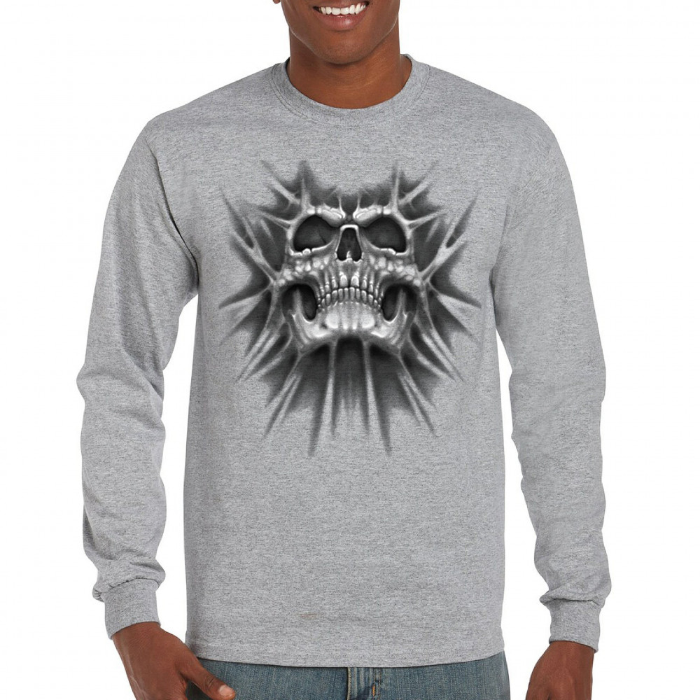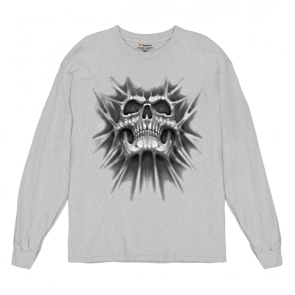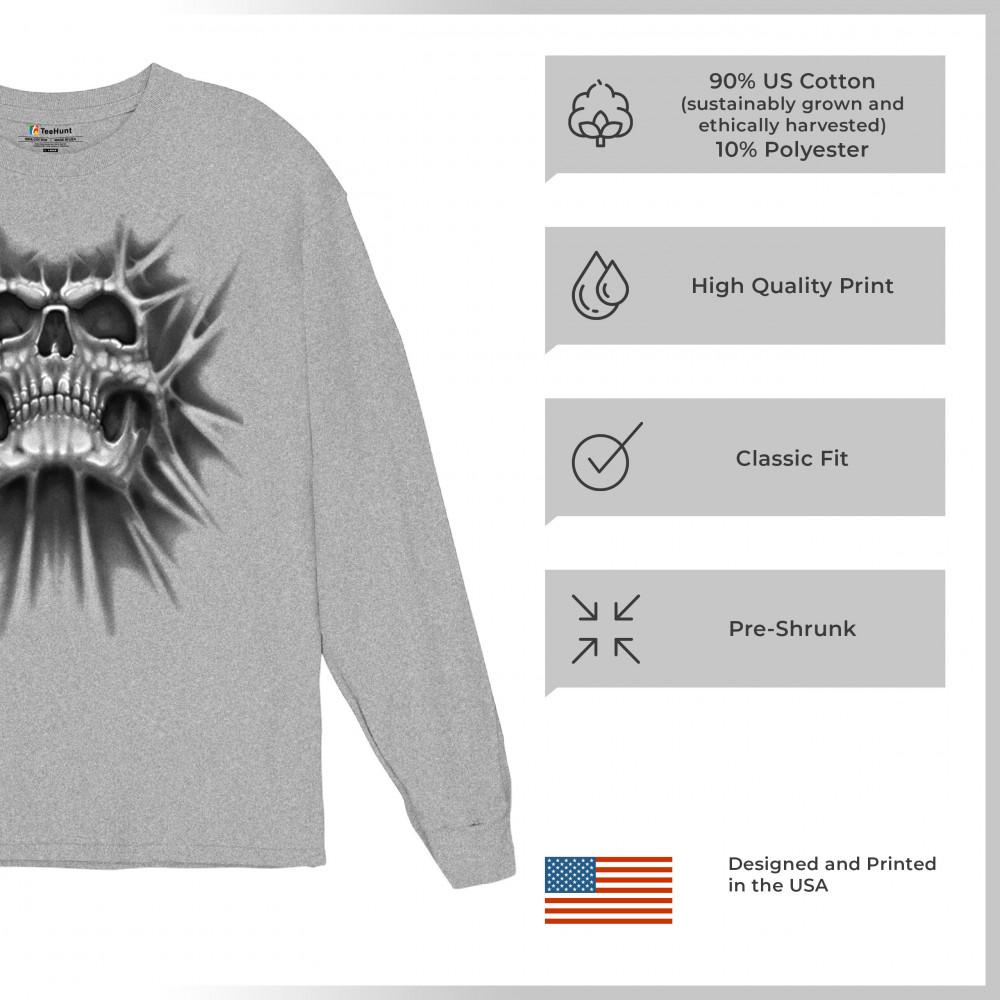Gothic skull biker shirt with roots design. Perfect for Metalhead, Rock n Roll fans, edgy rebel fashion, and spooky Halloween vibes.