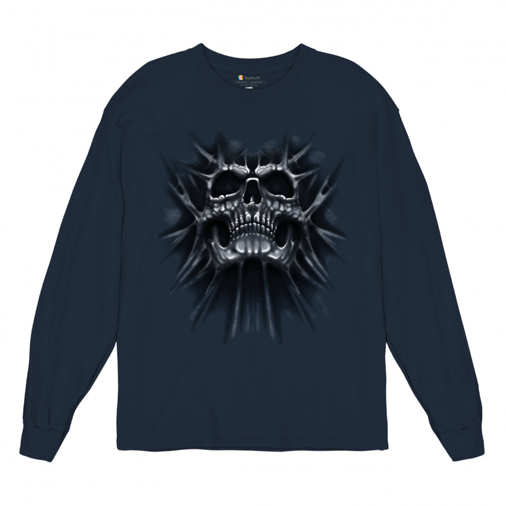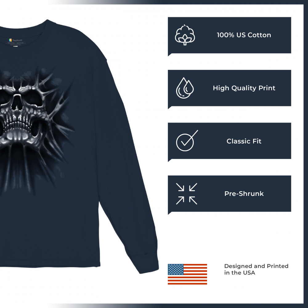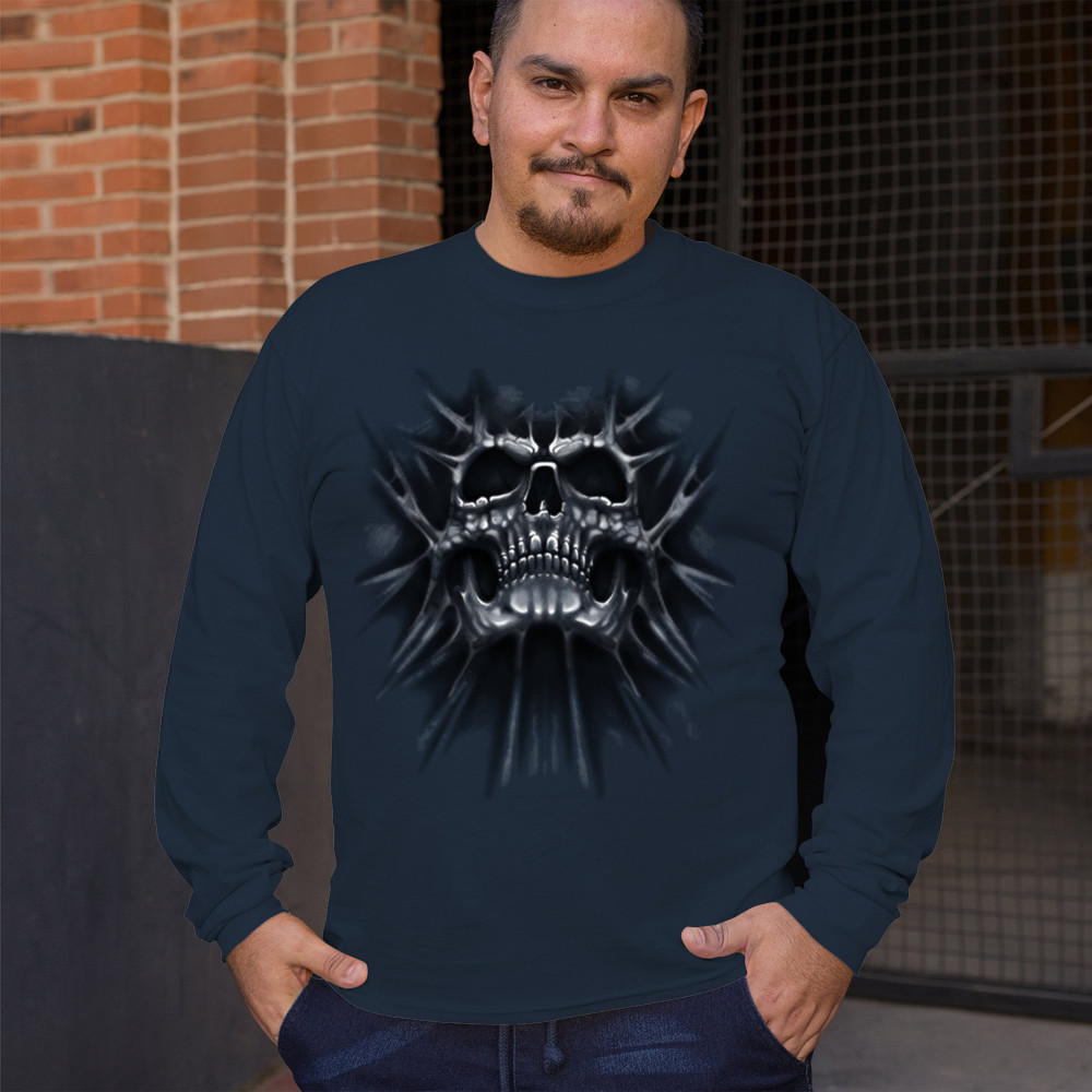 Gothic skull biker shirt with roots design. Perfect for Metalhead, Rock n Roll fans, edgy rebel fashion, and spooky Halloween vibes.