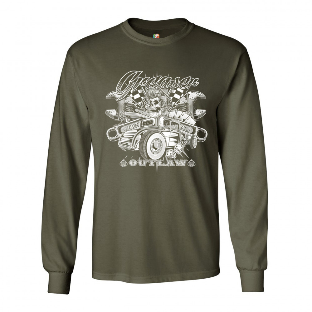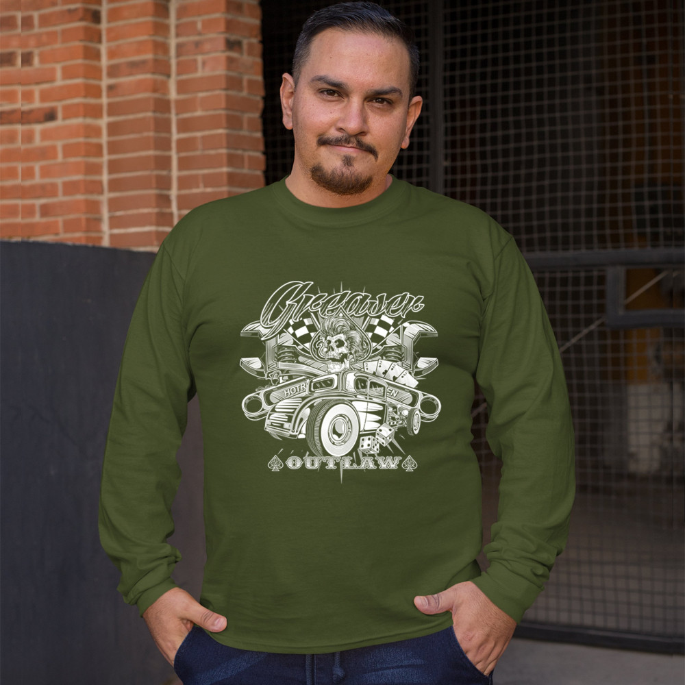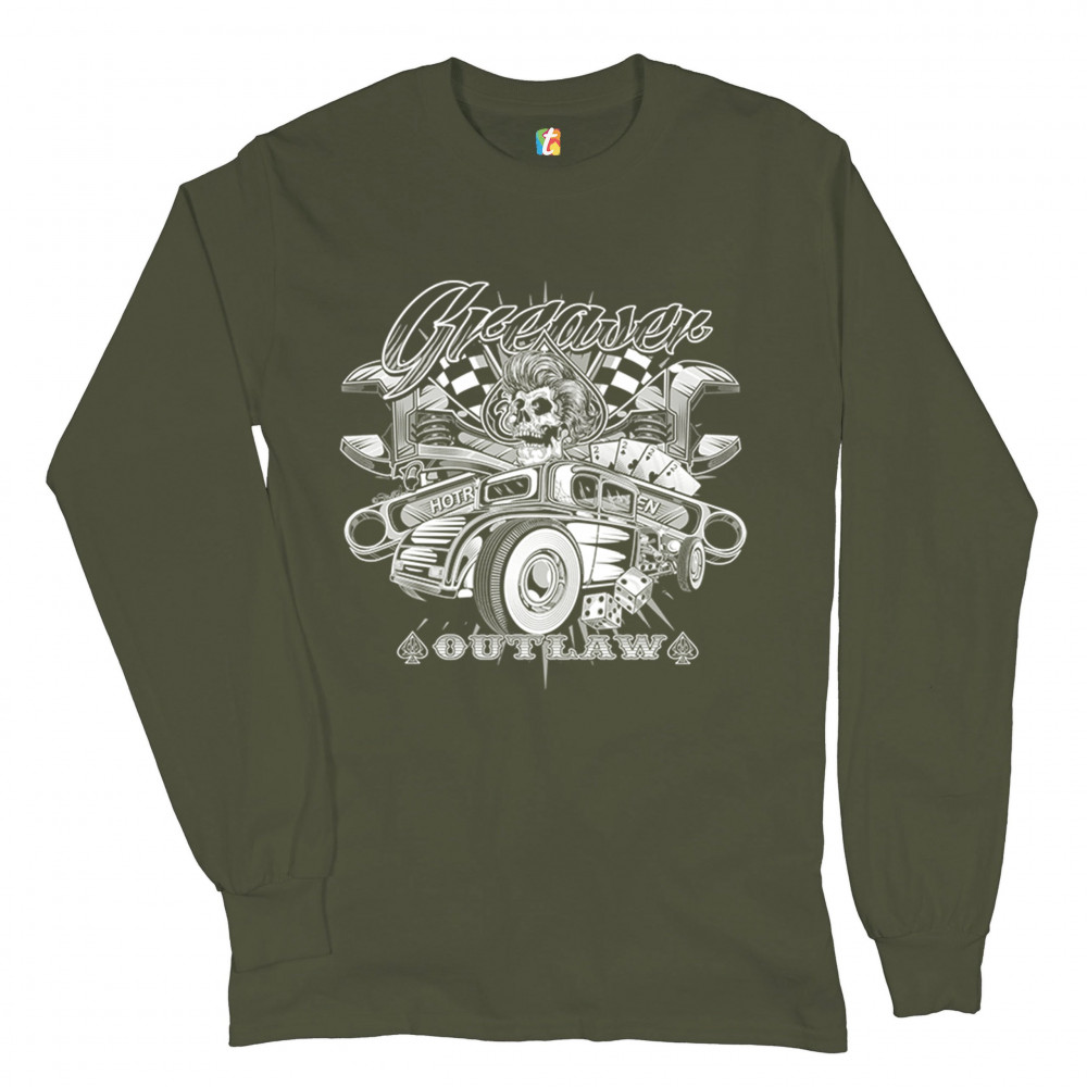 GREASER OUTLAW long sleeve t-shirt kustom kulture old school vintage hot rod military green