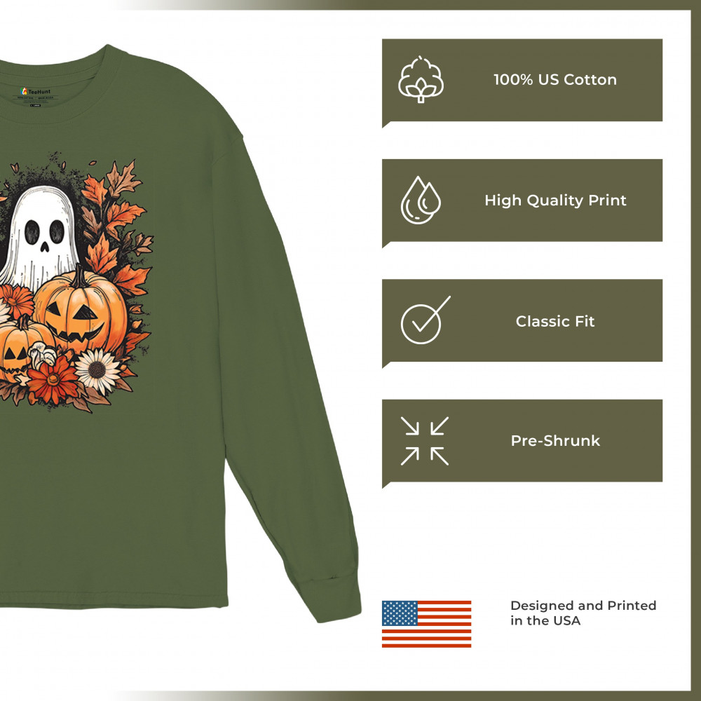 This pumpkin and ghost-themed design is perfect for Halloween and fall. Embrace the spooky season in style with this festive print!