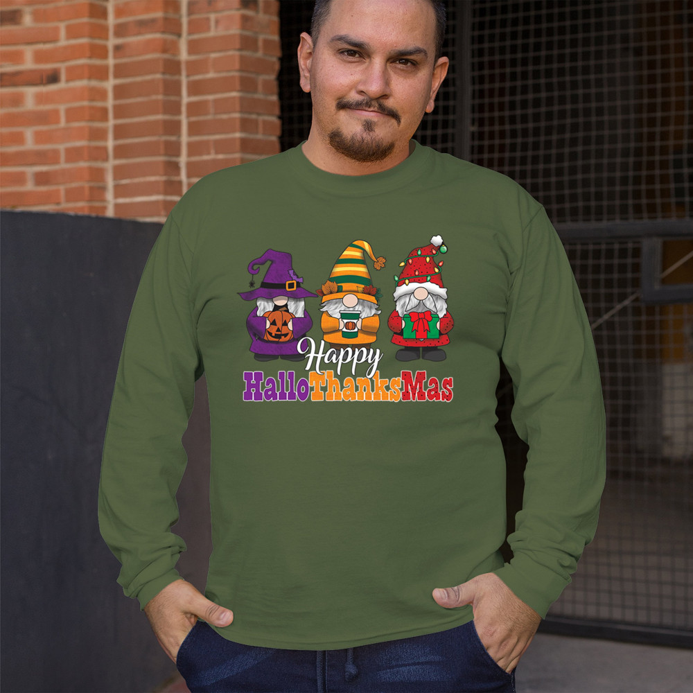 Celebrate the season of HalloThanksMas with this playful gnome design – perfect for Halloween, Thanksgiving, and Christmas festivities!
