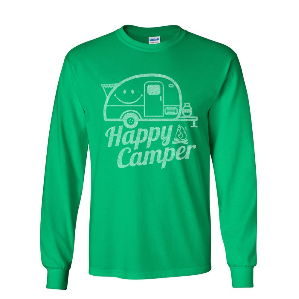 HAPPY CAMPER long sleeve t-shirt rv tourism camping summer nature travel tee green