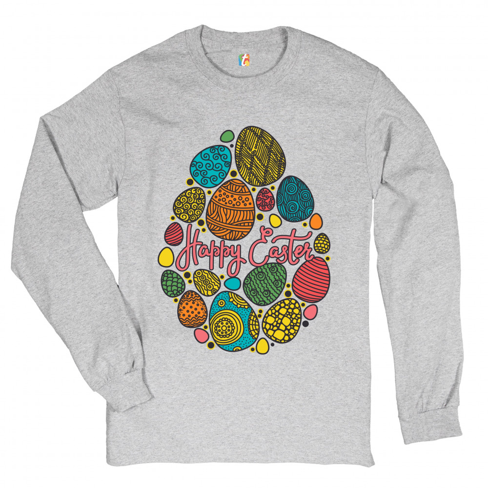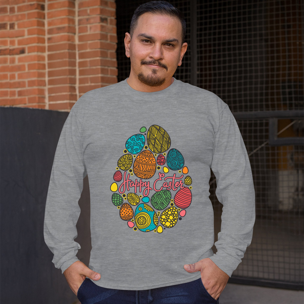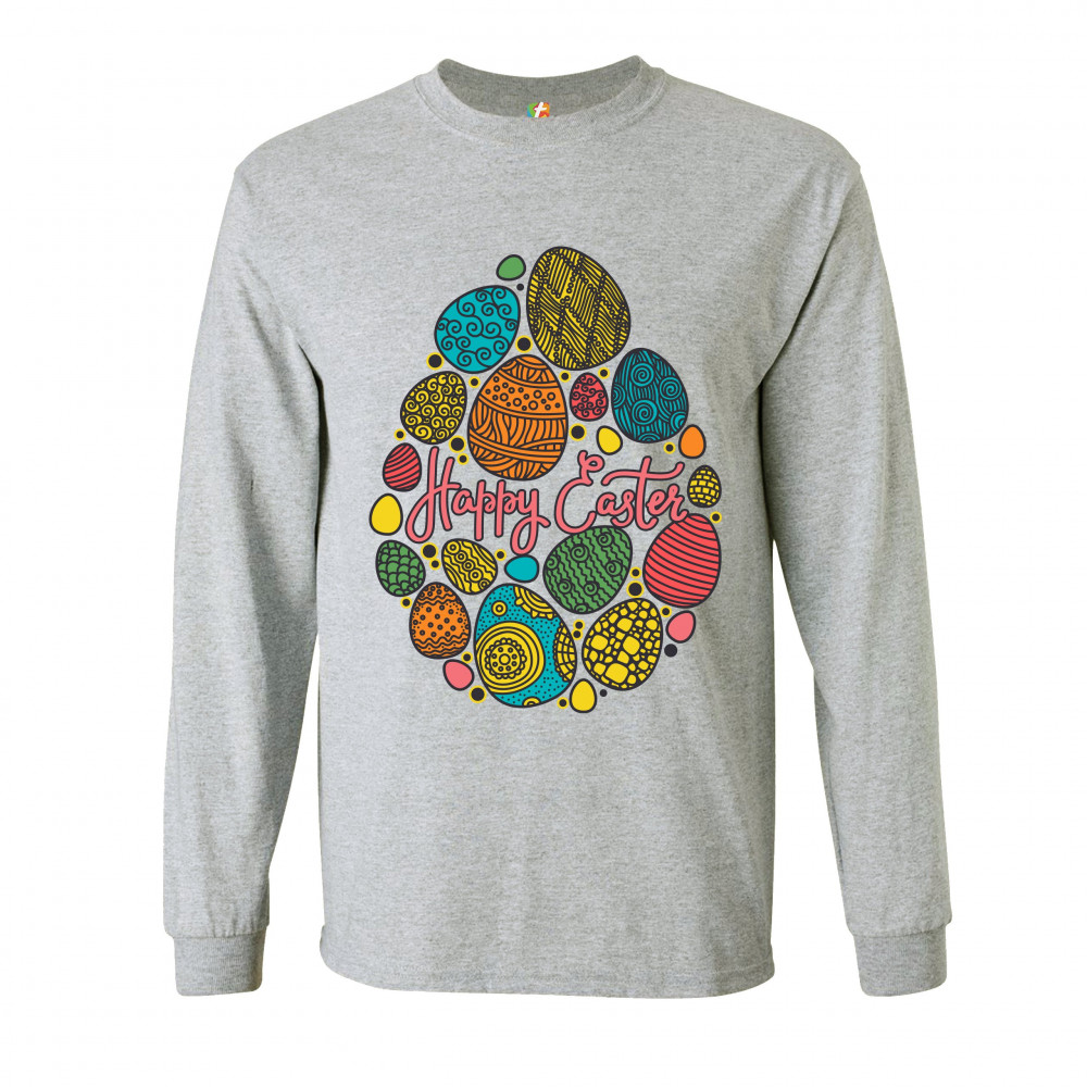 HAPPY EASTER long sleeve t-shirt pascha easter eggs jesus ressurection sunday gray