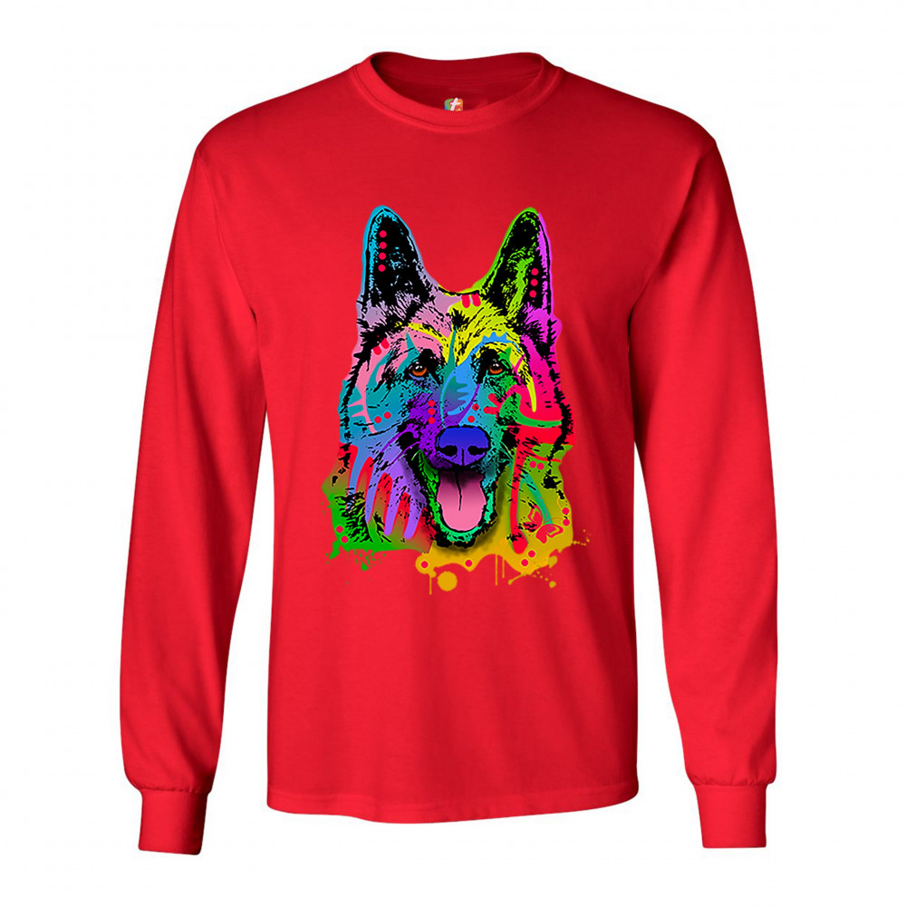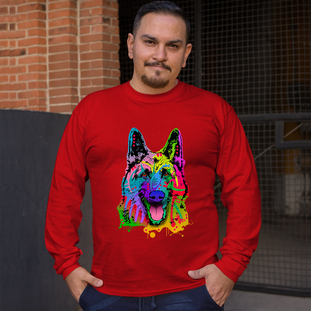 HAPPY GERMAN SHEPHERD long sleeve t-shirt andy maxx i love my dog best friend red