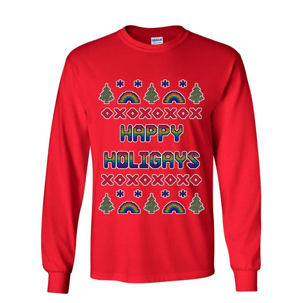 HAPPY HOLIGAYS long sleeve t-shirt gay merry christmas ho ho ho lgbt xmas tee red