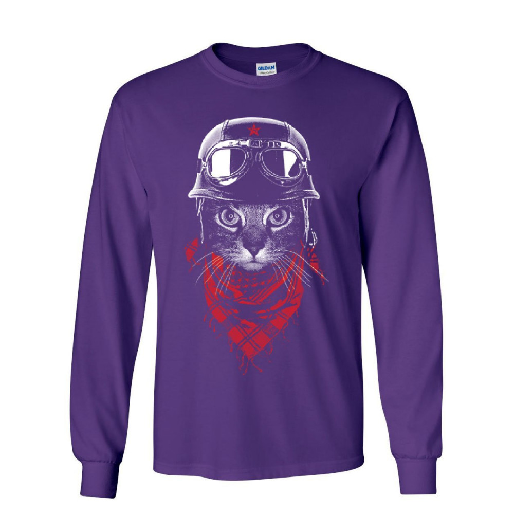 HARDCORE BIKER CAT long sleeve t-shirt adventurer motorcycle rider kitten tee purple
