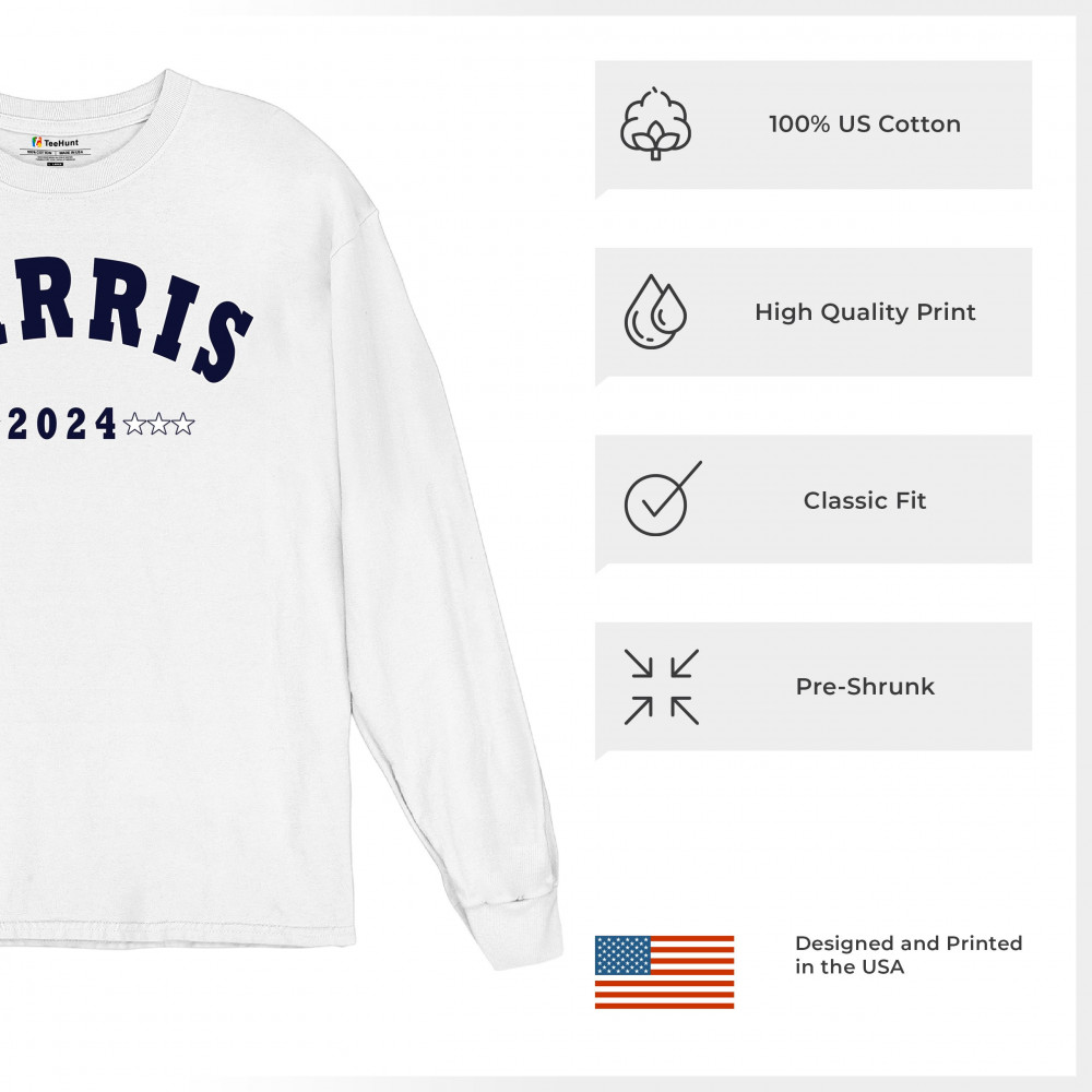 Stand with Kamala Harris and show your support for her 2024 presidential campaign with this striking design. Ideal for anti-Trump supporters, liberals, and democrats, this design features "Harris 2024" in bold lettering. Wear it to rallies, campaign events, or in your daily life to make a strong political statement. This design celebrates the historic possibility of electing the first female president and highlights the importance of representation for black Americans, Hispanic Americans, LGBTQ, and other minority communities. Make your voice heard with this powerful symbol.