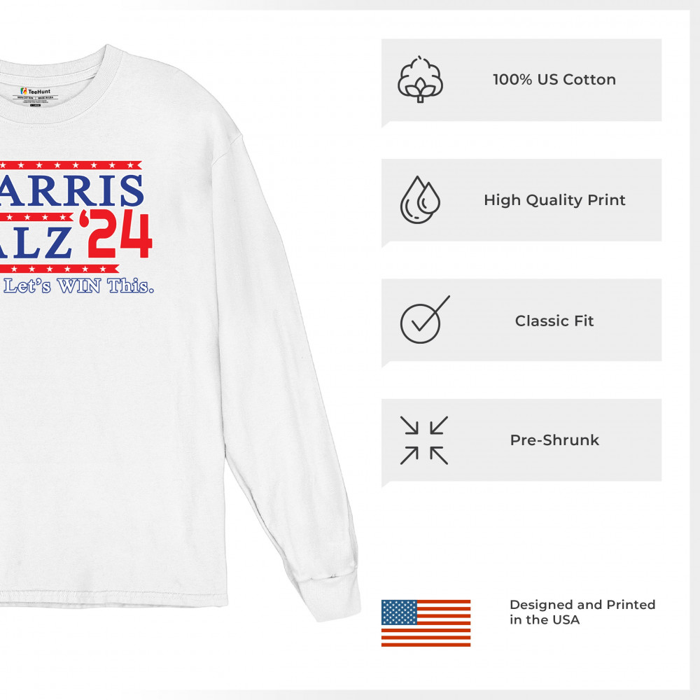 Support Kamala Harris and Tim Walz in 2024. Stand for liberal values, women's rights, and LGBTQ+ equality with this design. Let's Win This.
