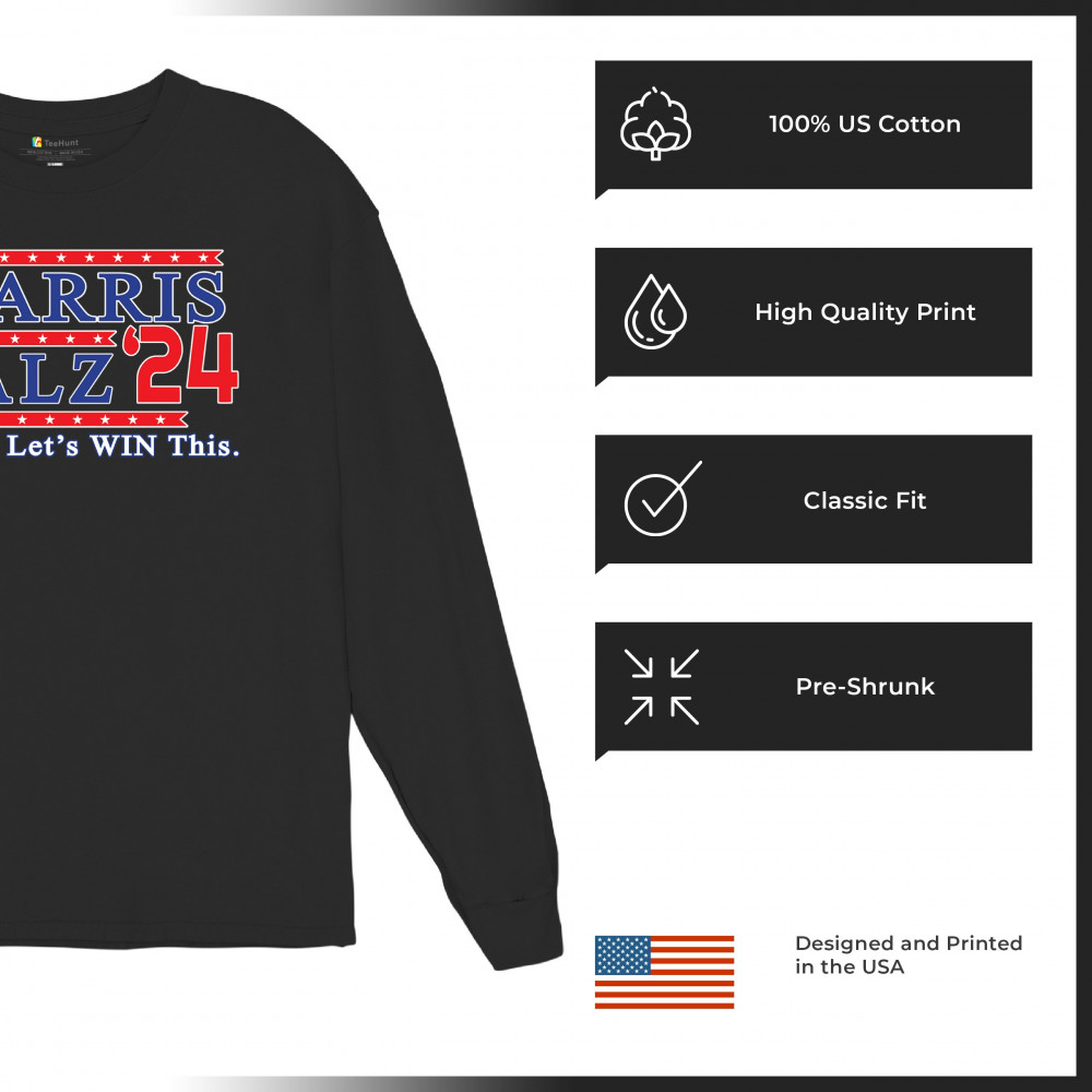 HARRIS WALZ 2024 LET'S WIN THIS long sleeve t-shirt madam president im speaking black