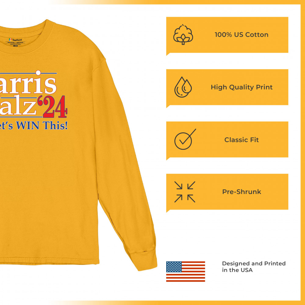 Support Kamala Harris and Tim Walz in the 2024 election. A design for anti-Trump supporters and Democrats advocating for justice, equality, and inclusion.