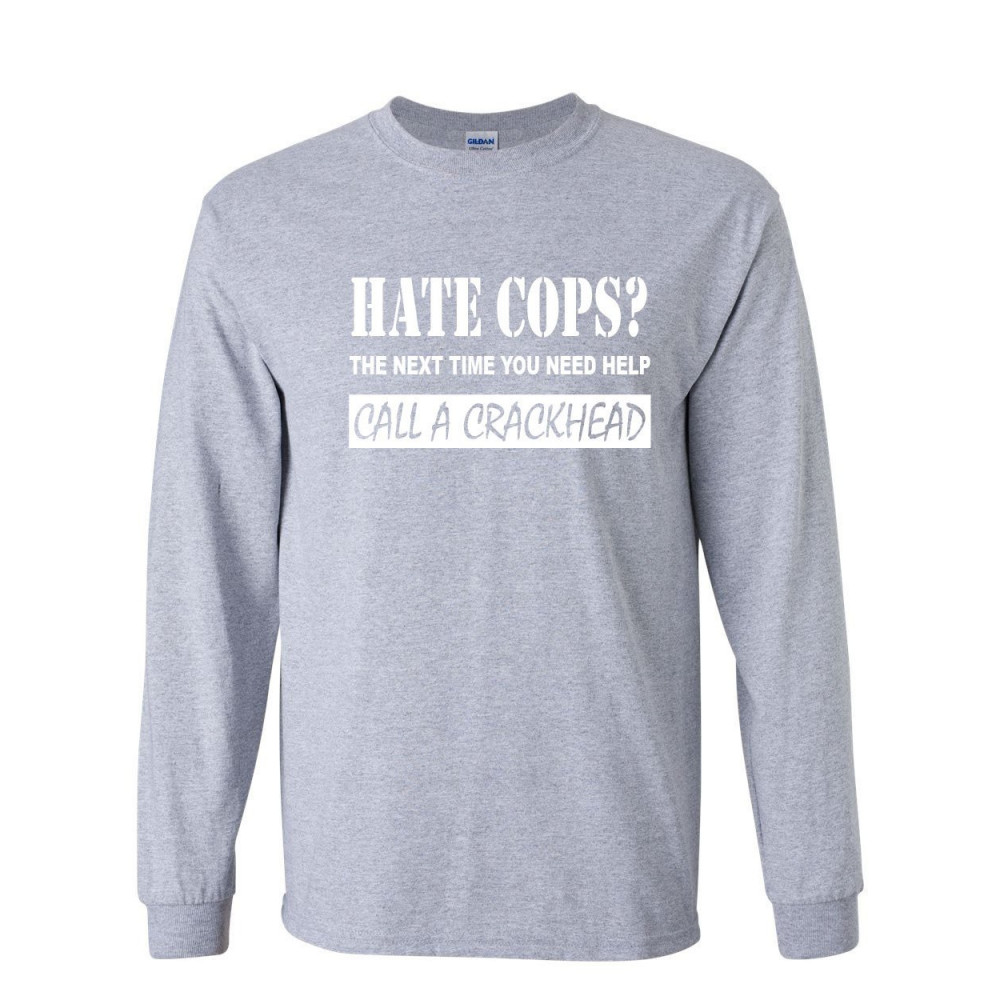 HATE COPS? CALL A CRACKHEAD long sleeve t-shirt funny police gray