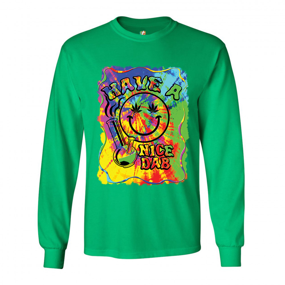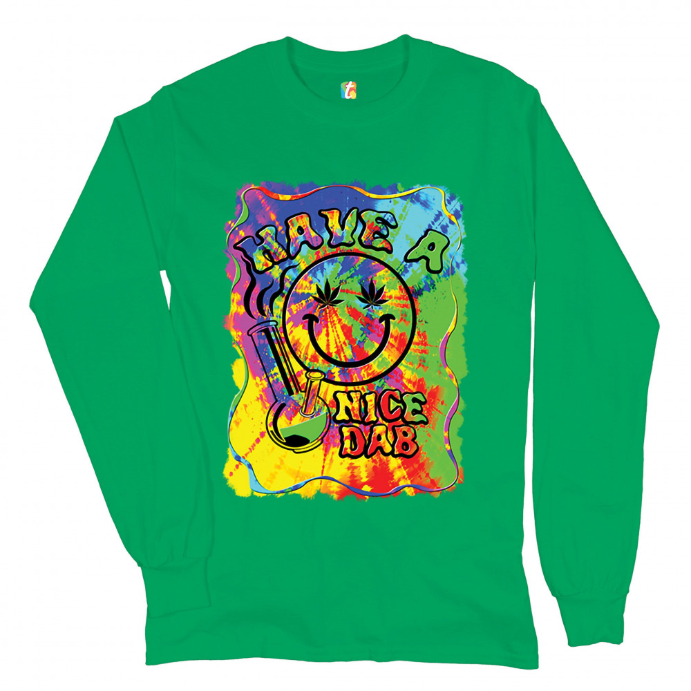 HAVE A NICE DAB long sleeve t-shirt 420 happy face hitting marijuana weed bong green