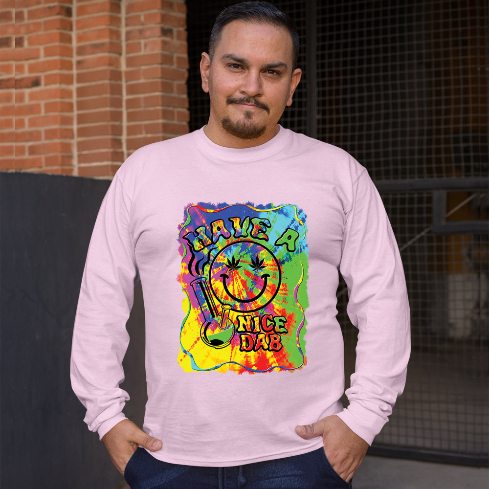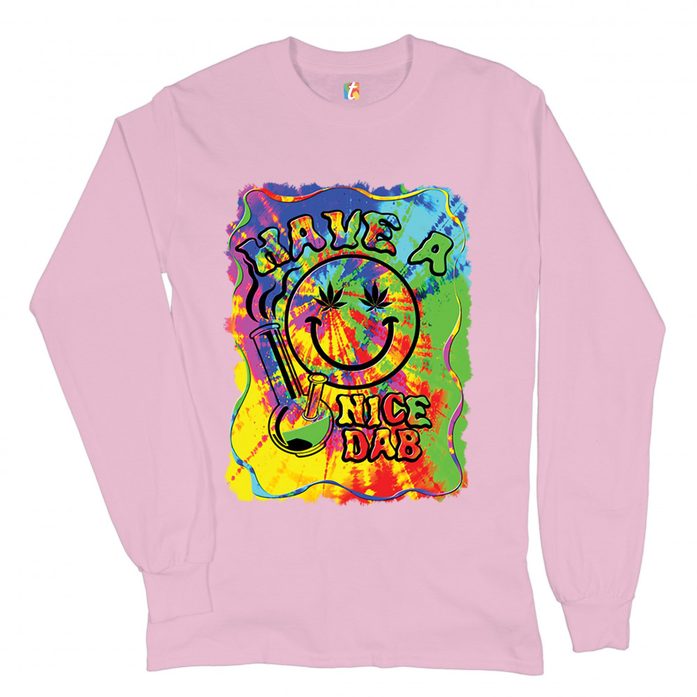 HAVE A NICE DAB long sleeve t-shirt 420 happy face hitting marijuana weed bong pink