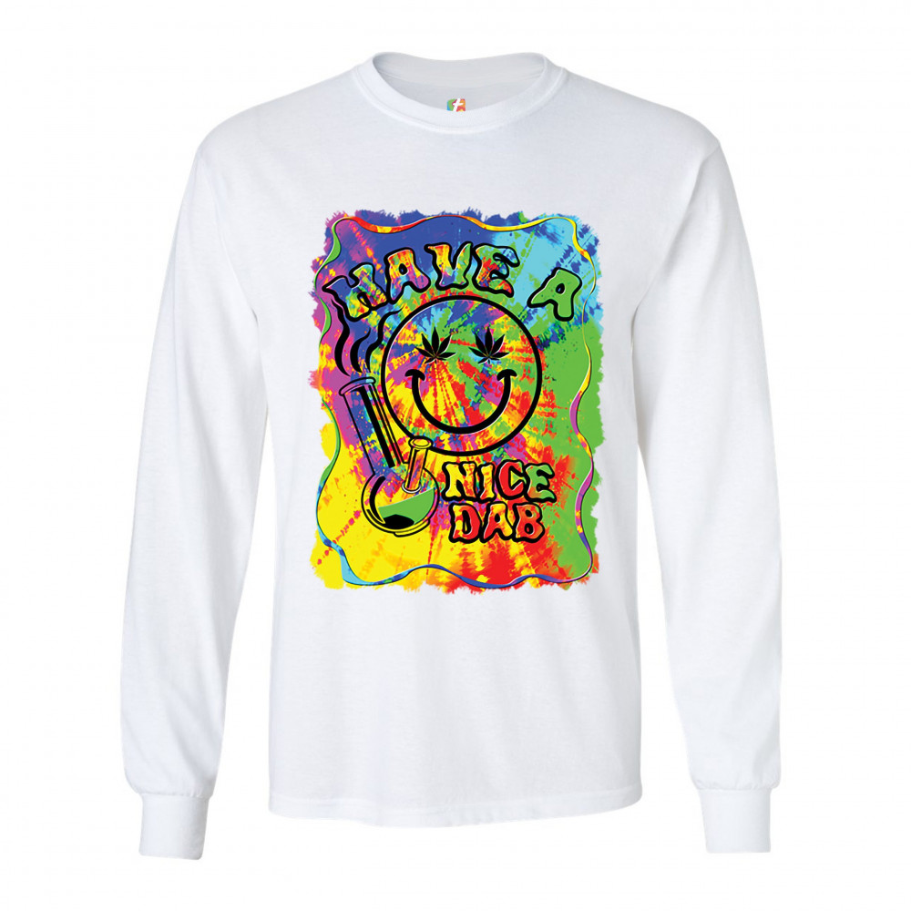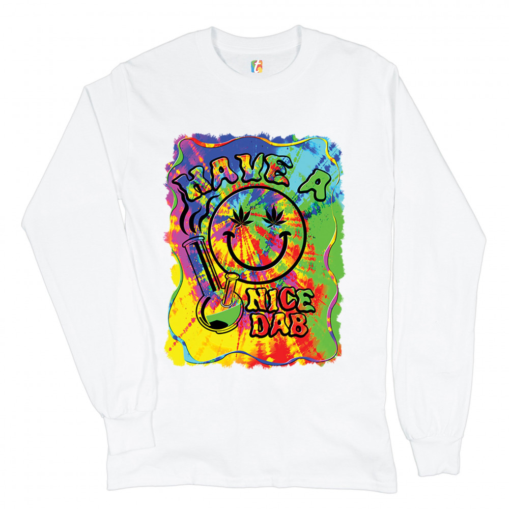 HAVE A NICE DAB long sleeve t-shirt 420 happy face hitting marijuana weed bong white