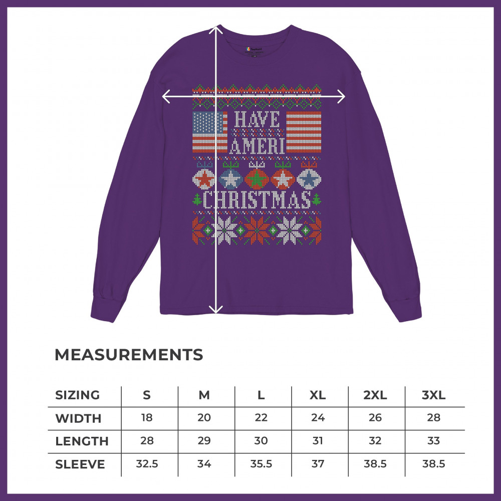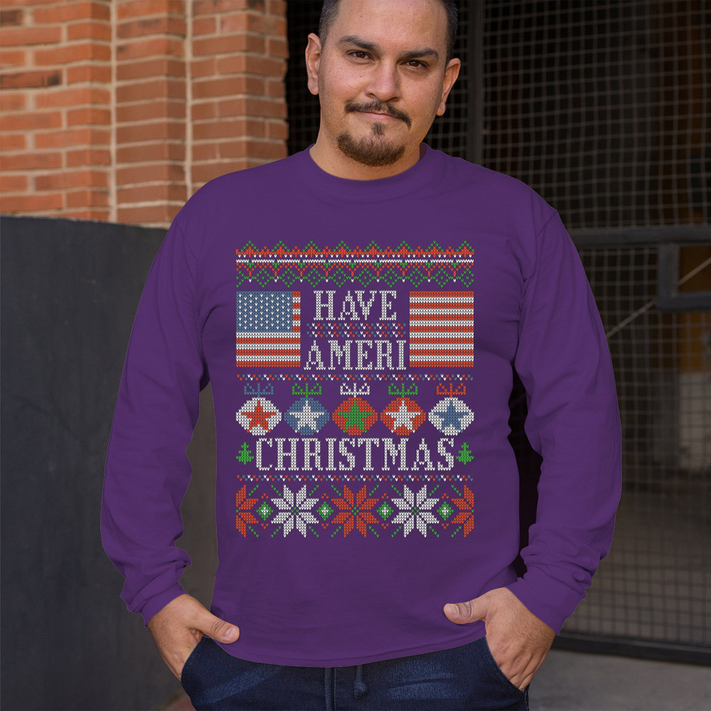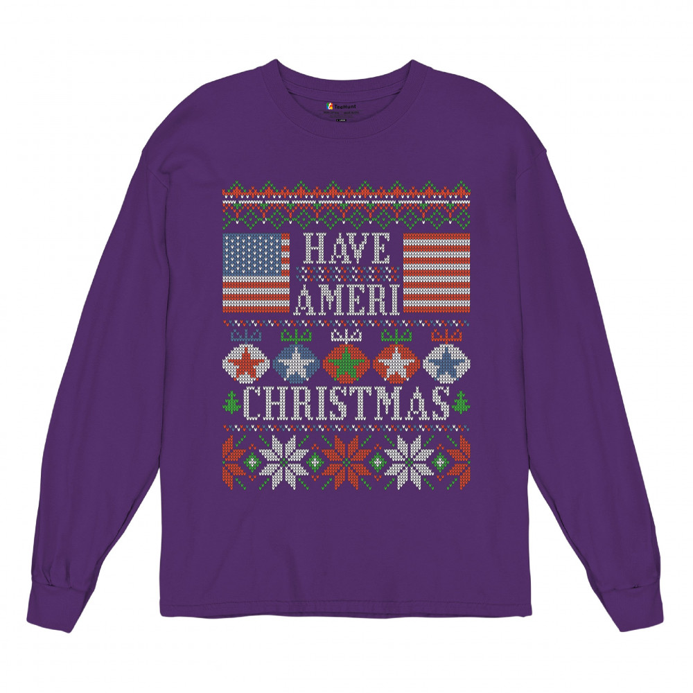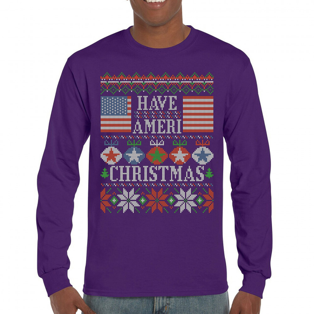 HAVE AMERI CHRISTMAS long sleeve t-shirt american flag ugly sweater patriotic purple