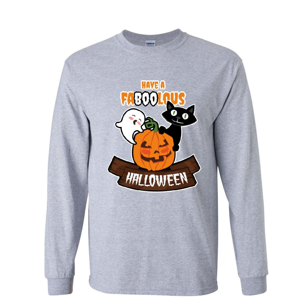 HAVE A FABOOLOUS HALLOWEEN have faboolous halloween long sleeve t-shirt funny ghost pumpkin black cat tee gray