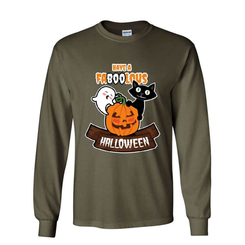 HAVE A FABOOLOUS HALLOWEEN have faboolous halloween long sleeve t-shirt funny ghost pumpkin black cat tee military green