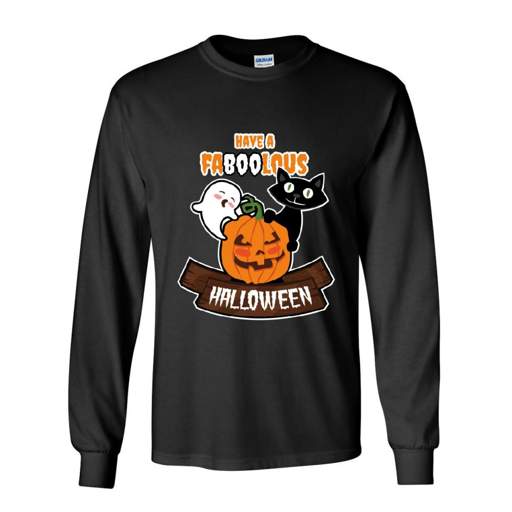 HAVE A FABOOLOUS HALLOWEEN have faboolous halloween long sleeve t-shirt funny ghost pumpkin black cat tee black