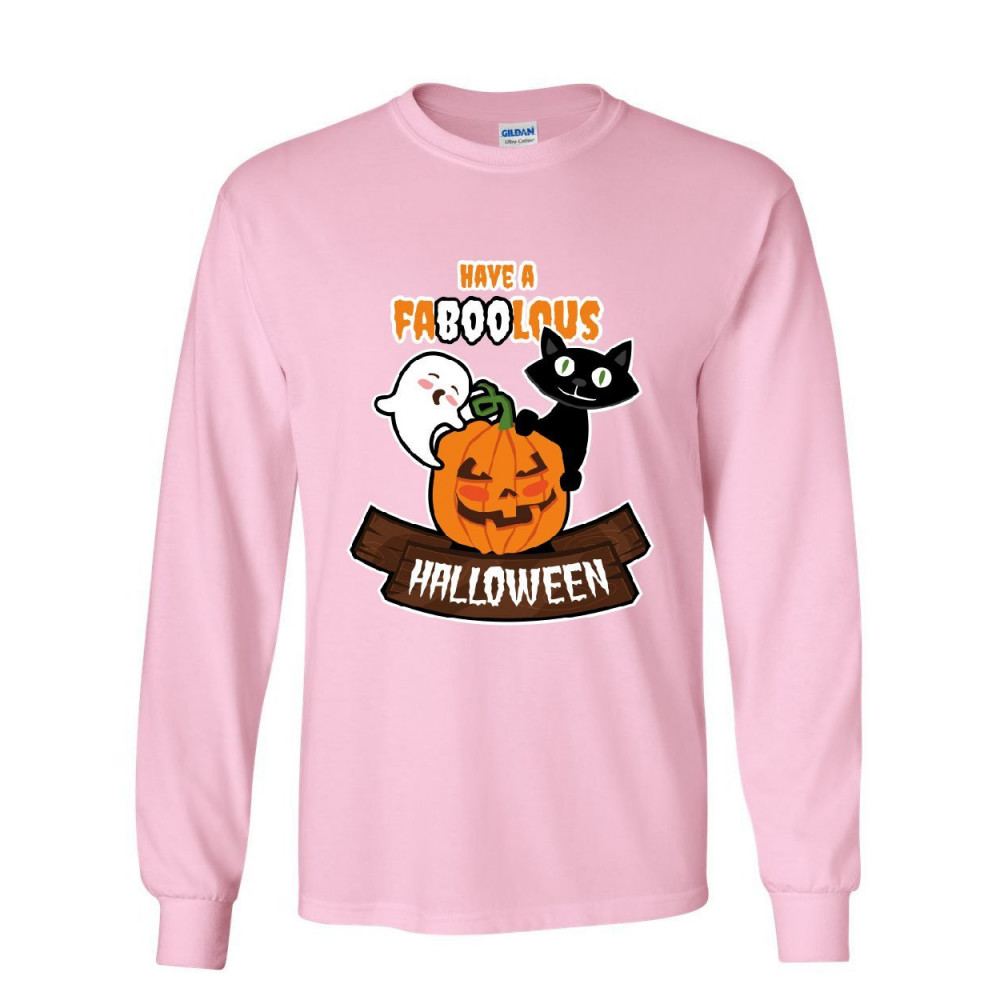 HAVE A FABOOLOUS HALLOWEEN have faboolous halloween long sleeve t-shirt funny ghost pumpkin black cat tee light pink