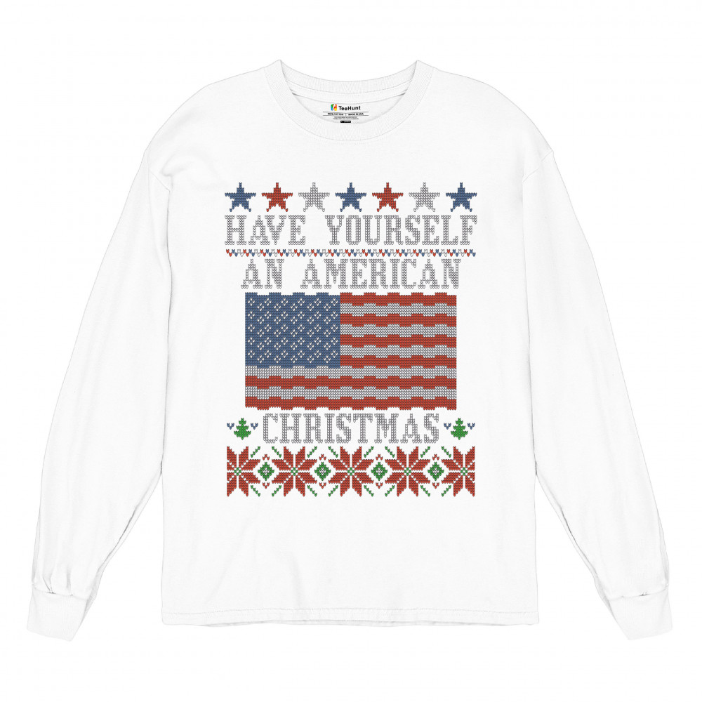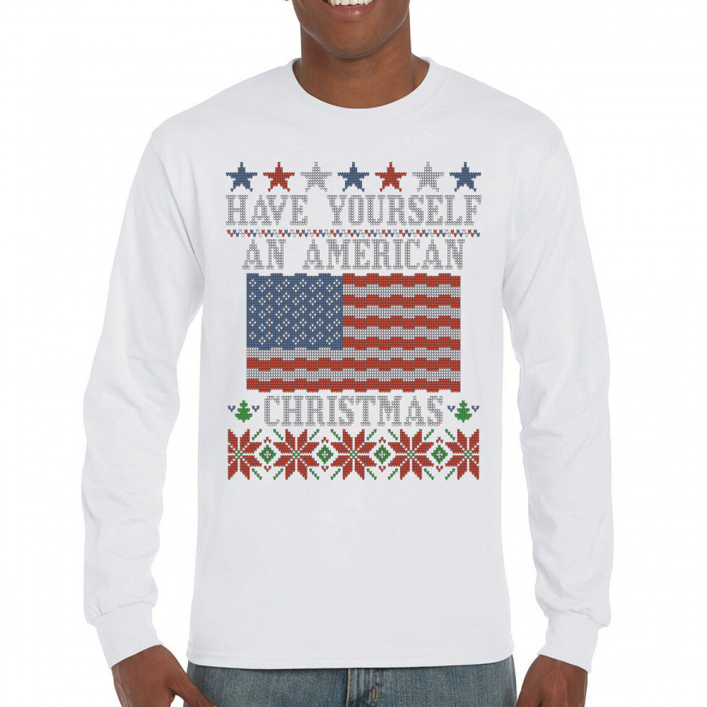 HAVE YOURSELF AN AMERICAN CHRISTMAS long sleeve t-shirt ugly sweater patriotic white