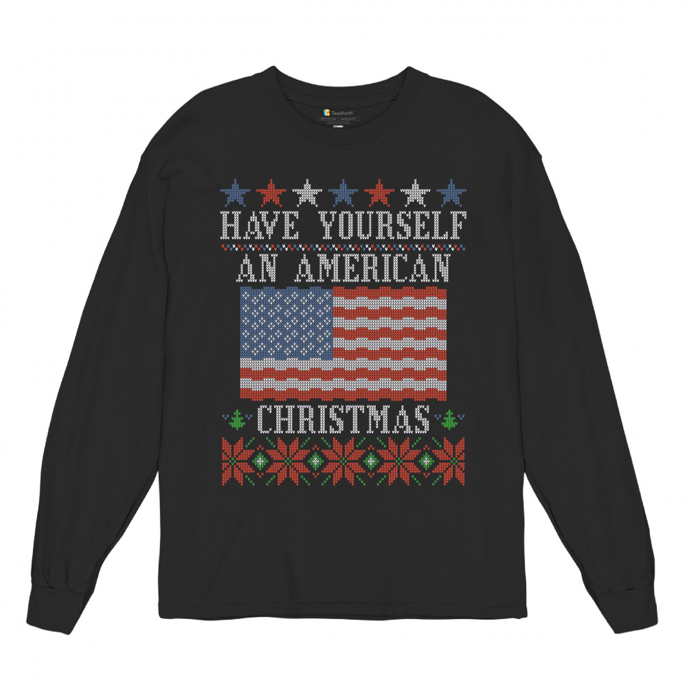 HAVE YOURSELF AN AMERICAN CHRISTMAS long sleeve t-shirt ugly sweater patriotic black