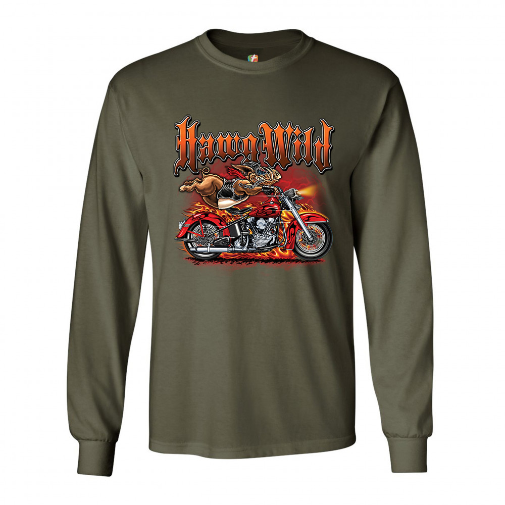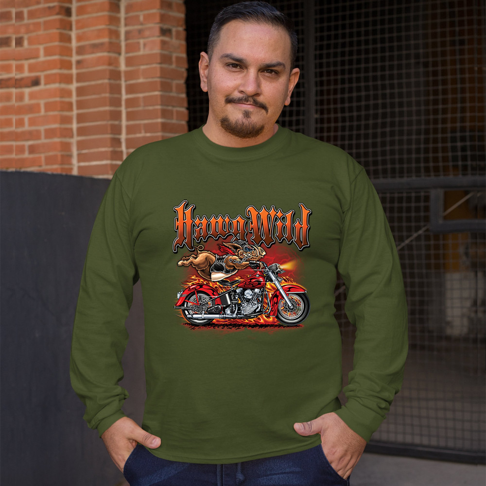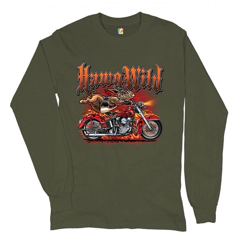 HAWG WILD long sleeve t-shirt born to be wild biker rider motorcycle enthusiast military green