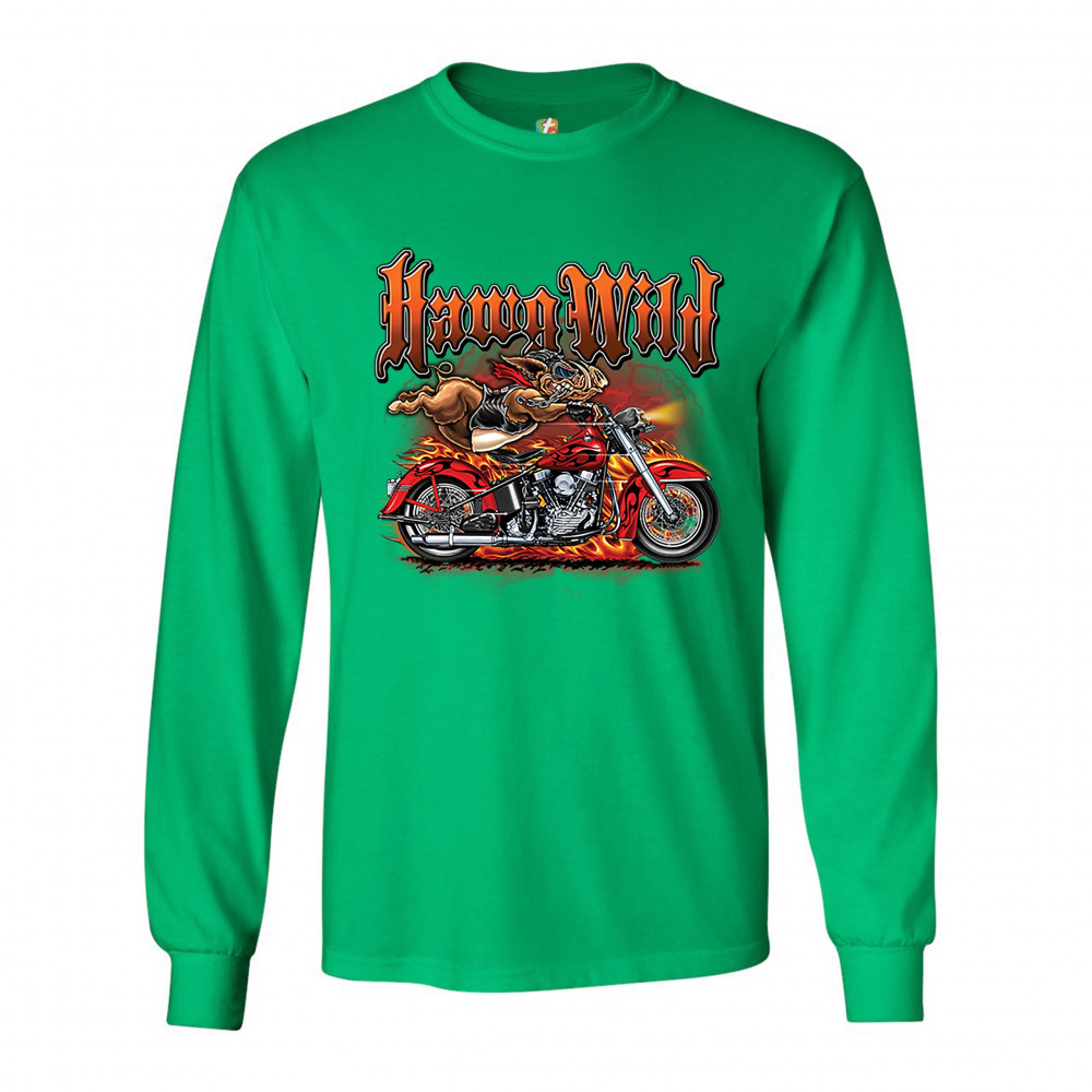 HAWG WILD long sleeve t-shirt born to be wild biker rider motorcycle enthusiast green