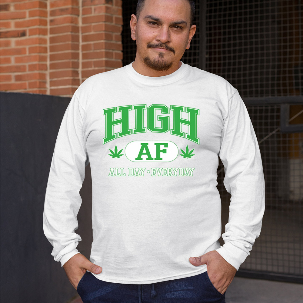 HIGH AF cannabis design with bold text and 420 humor. Great for stoners, chill vibes, festivals, and everyday weed lifestyle expression.