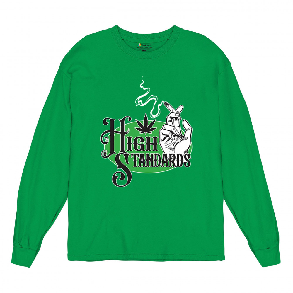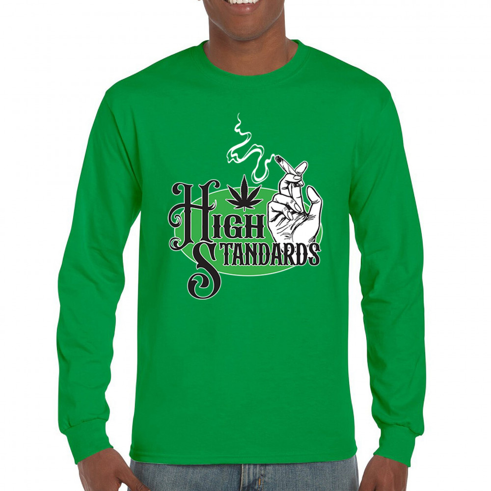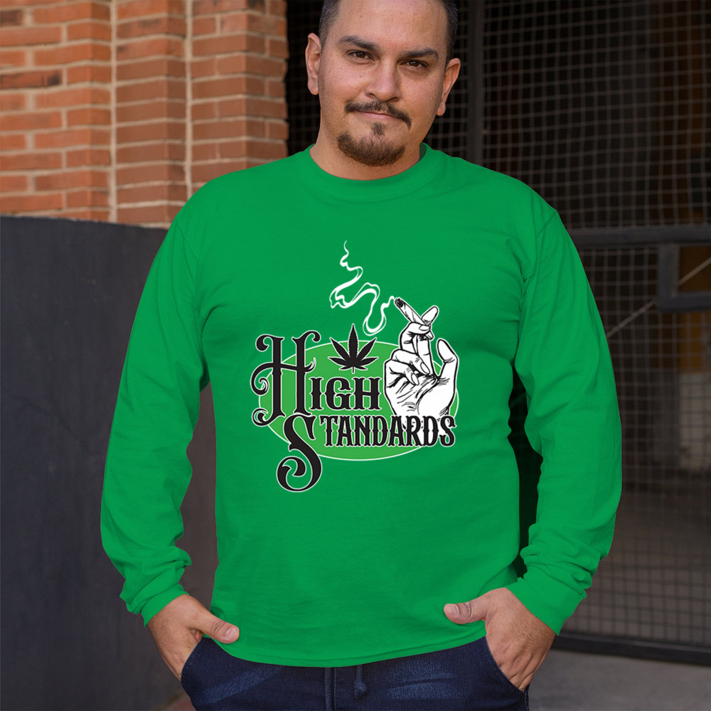 High Standards weed design with blunt humor and stoner pride. Features joint, cannabis leaf, pothead attitude, and classy chillout vibes.