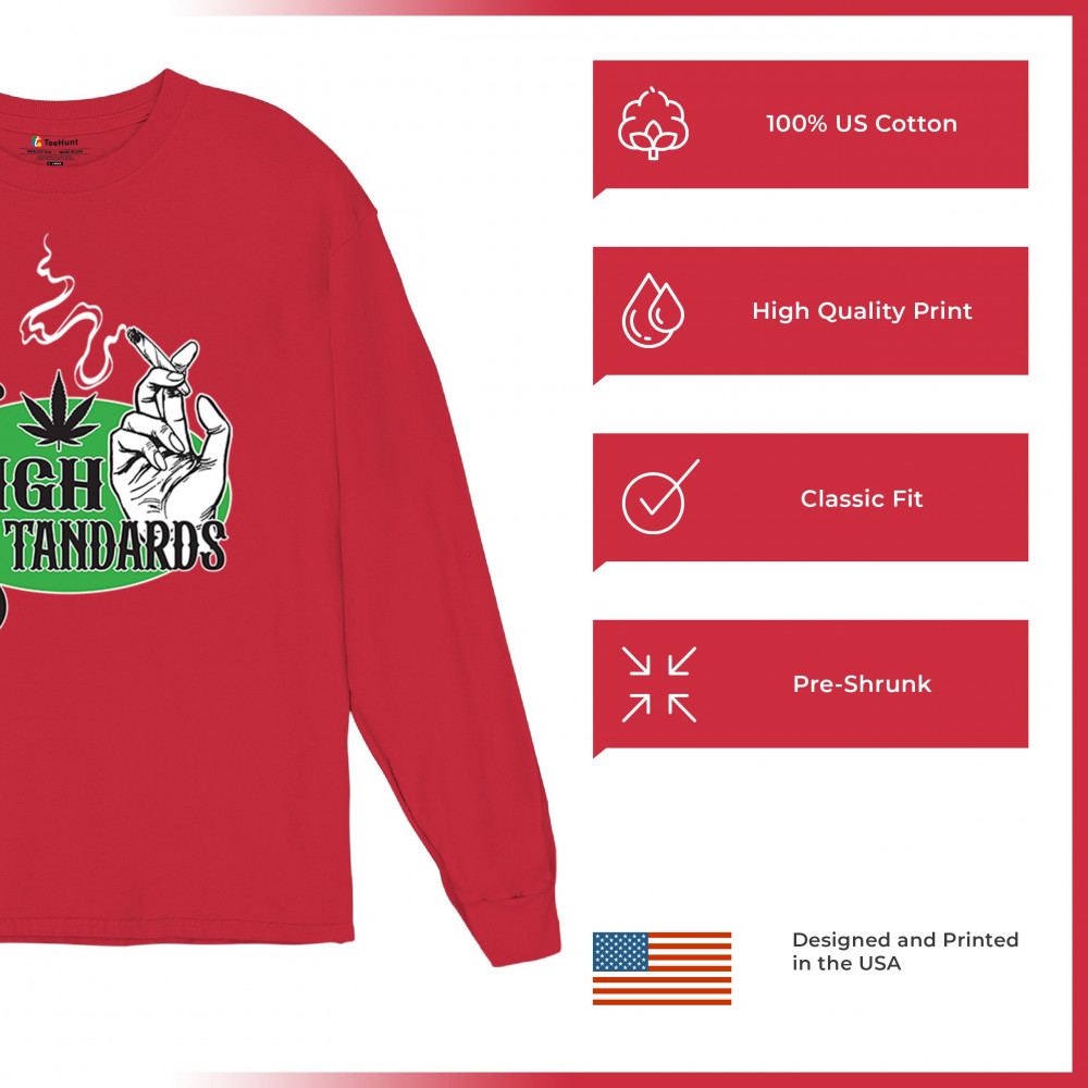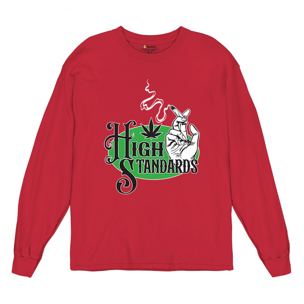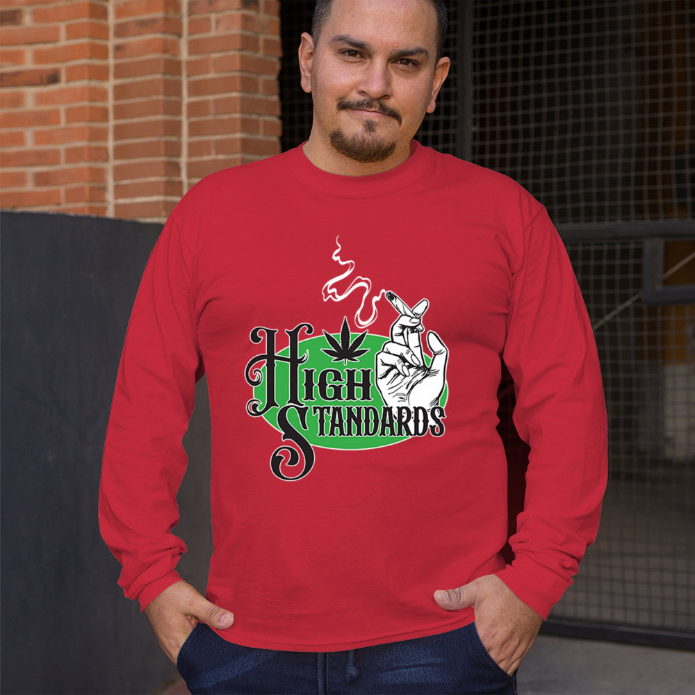 High Standards weed design with blunt humor and stoner pride. Features joint, cannabis leaf, pothead attitude, and classy chillout vibes.
