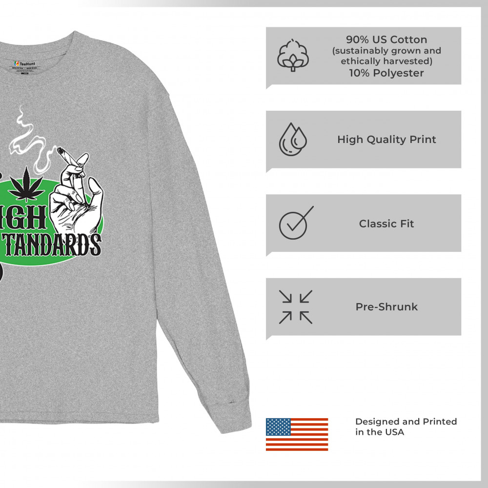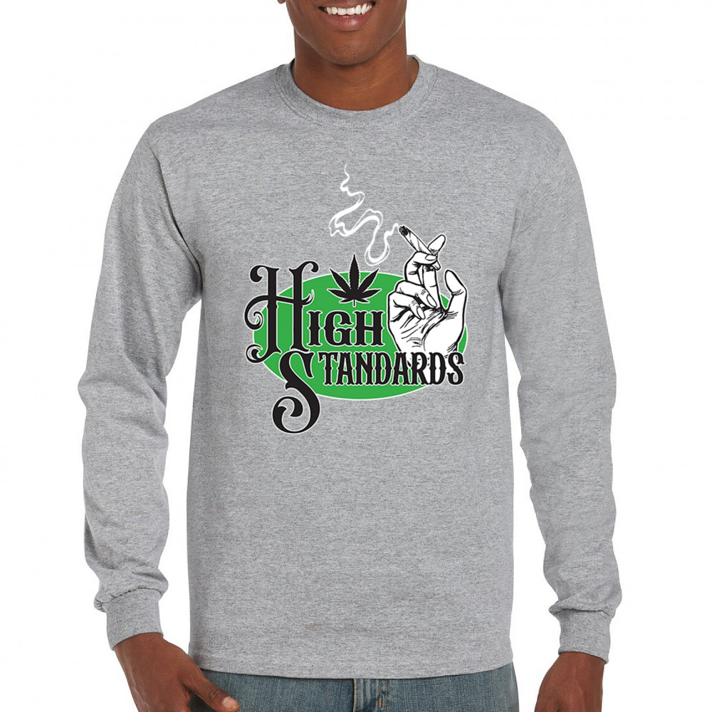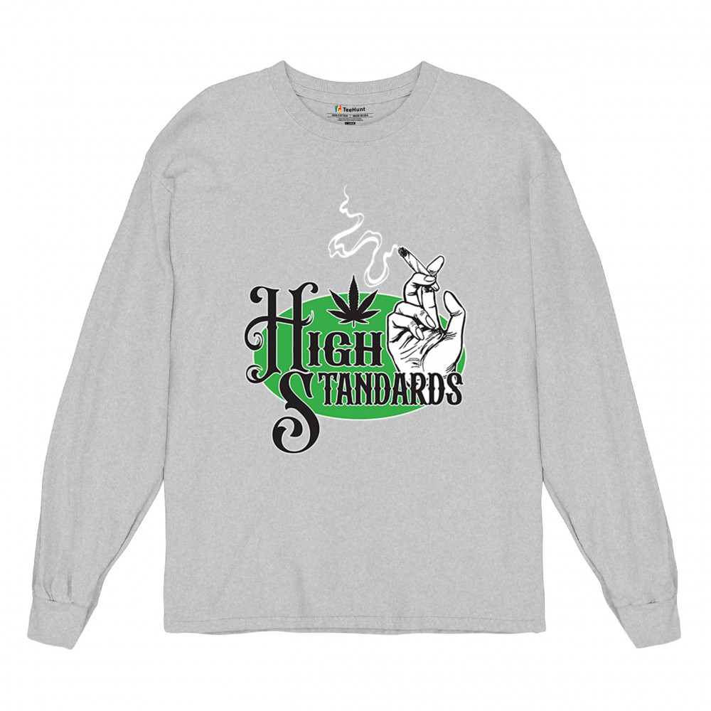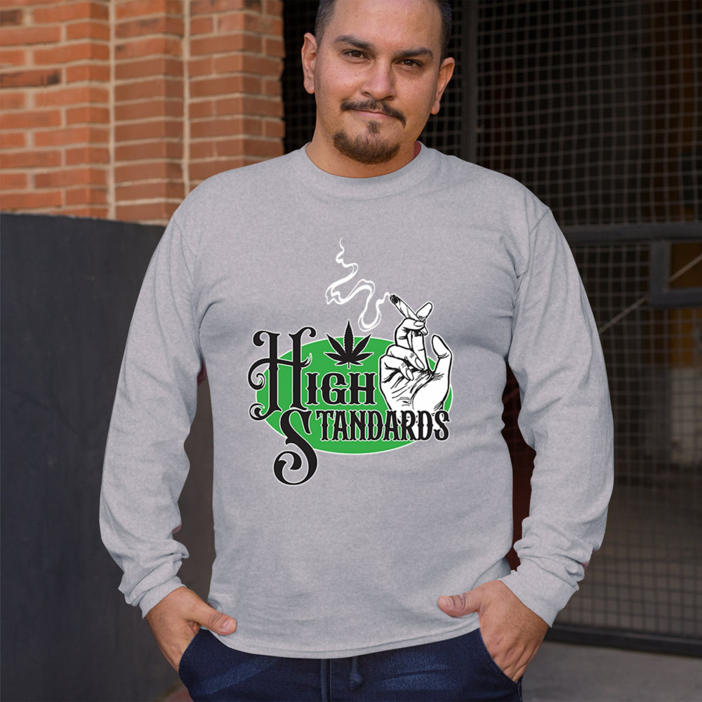 High Standards weed design with blunt humor and stoner pride. Features joint, cannabis leaf, pothead attitude, and classy chillout vibes.