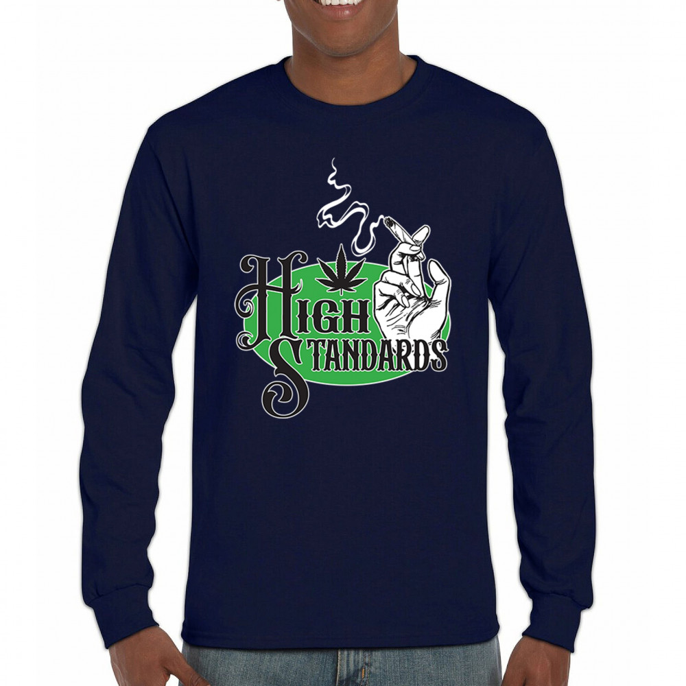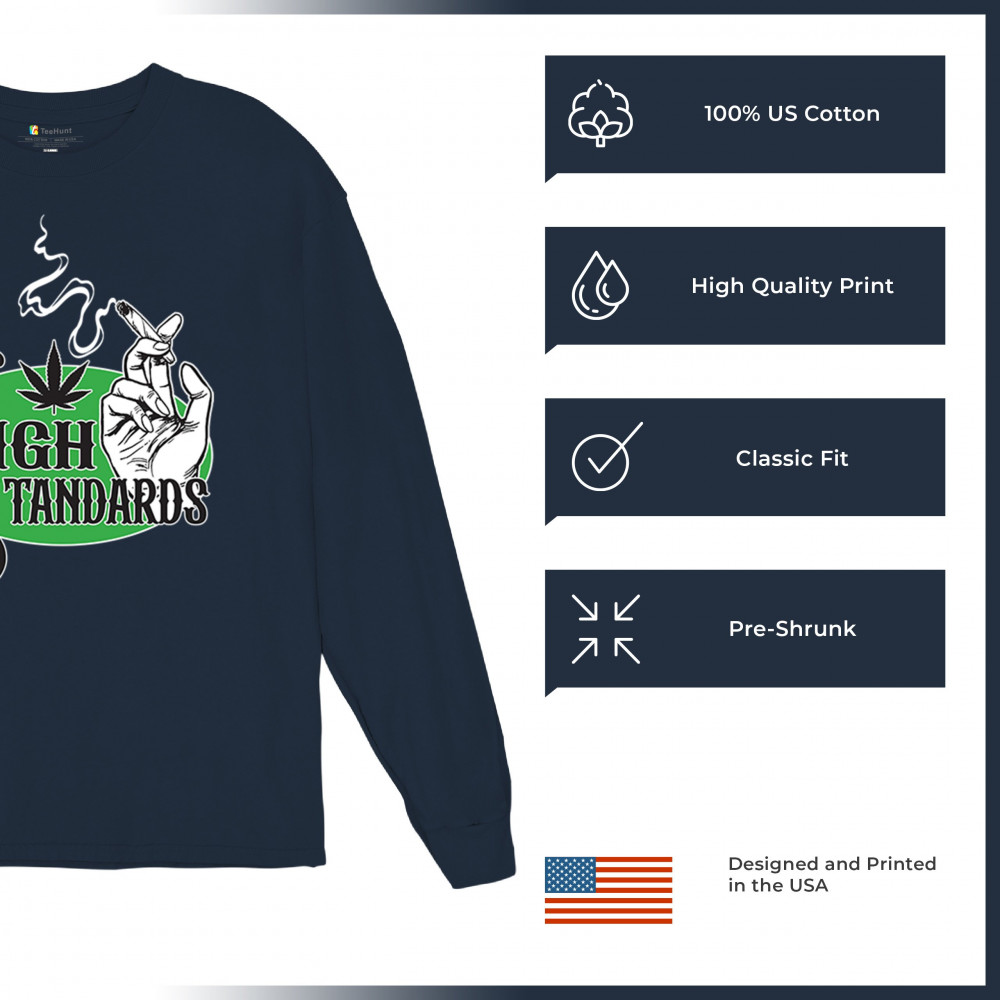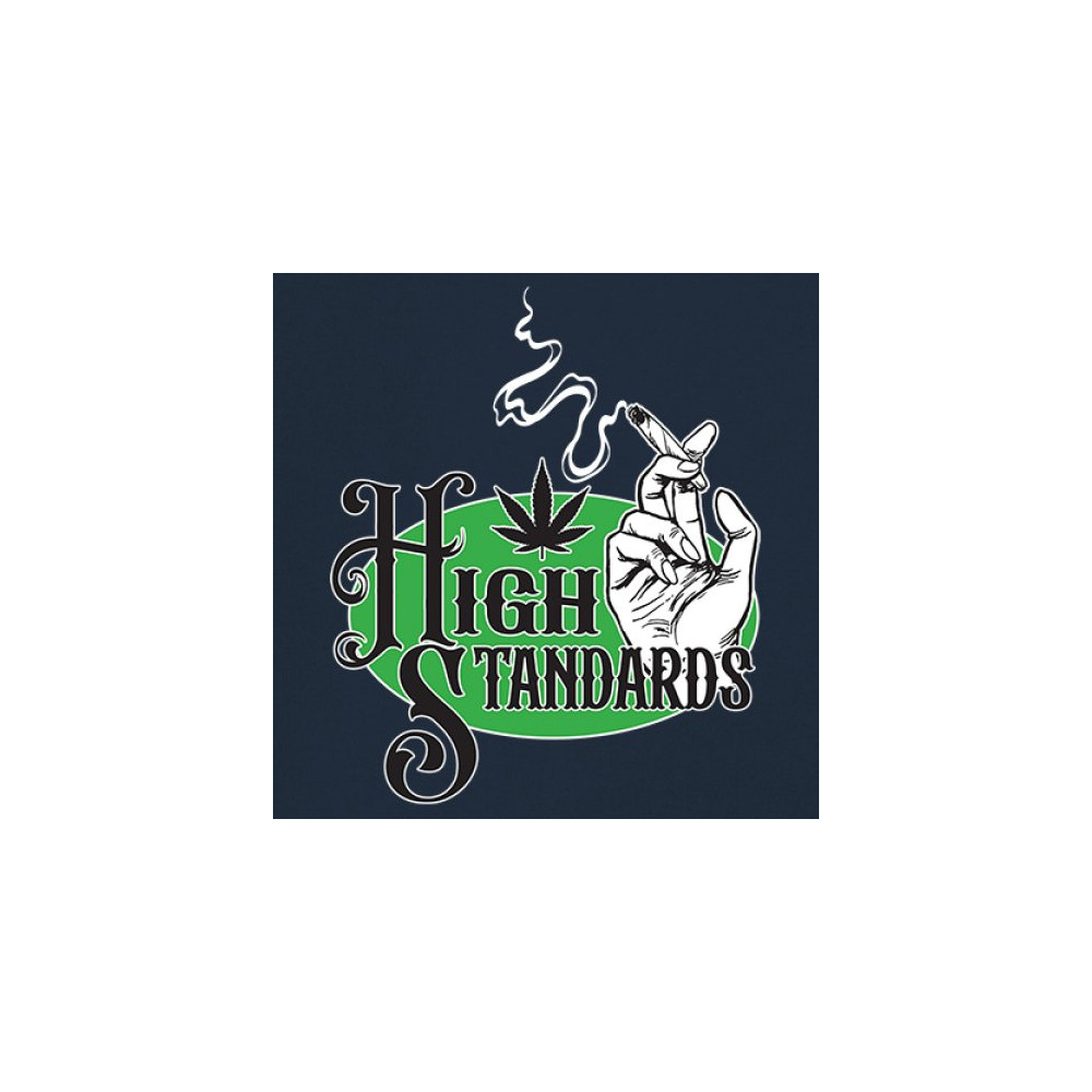High Standards weed design with blunt humor and stoner pride. Features joint, cannabis leaf, pothead attitude, and classy chillout vibes.