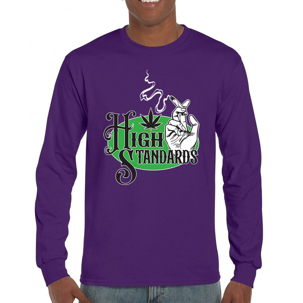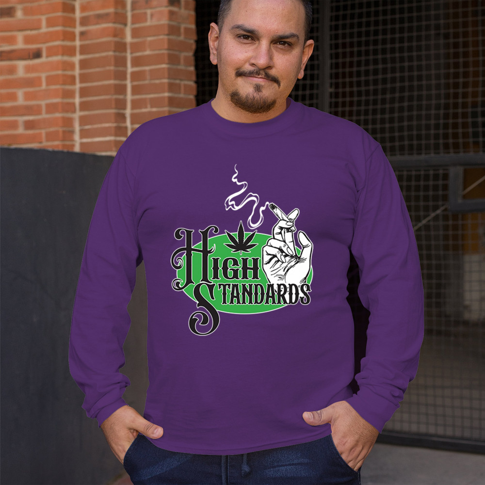 High Standards weed design with blunt humor and stoner pride. Features joint, cannabis leaf, pothead attitude, and classy chillout vibes.